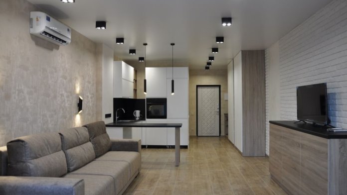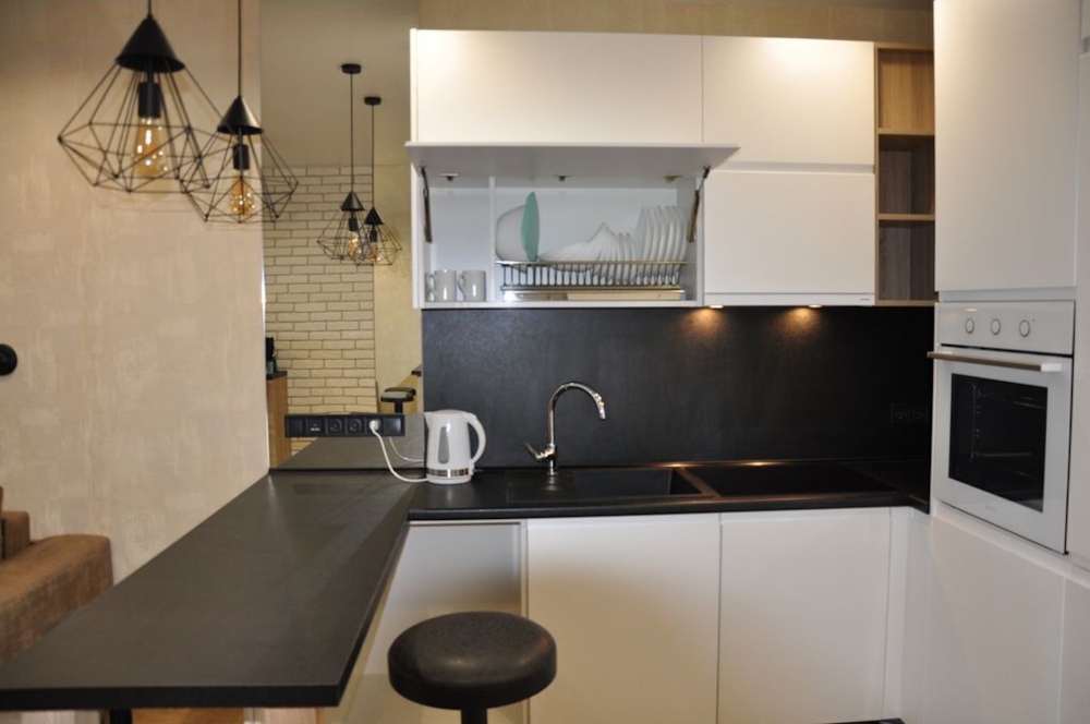 Апартаменты оборудованы всем необходимым для комфортного проживания 2-4 человек, кухней, санузлом, огромным раскладным диваном для ежедневного сна со спальным местом. Апартаменты оборудованы бытовой техникой и кухонными принадлежностями, есть все необходимое для комфортного проживания и отдыха.