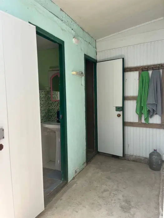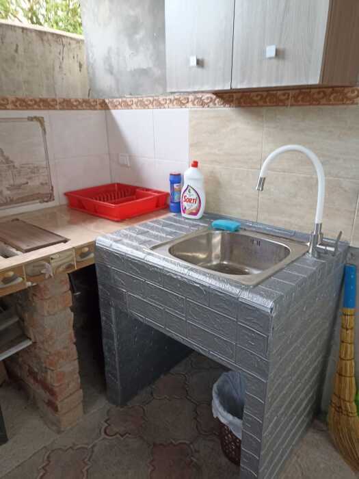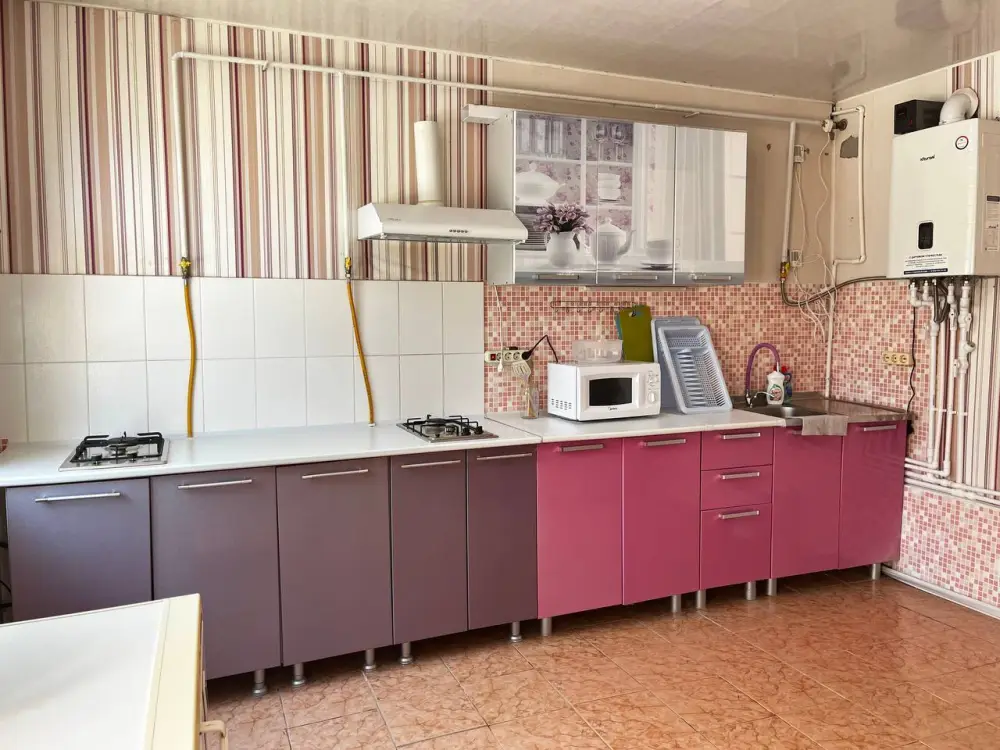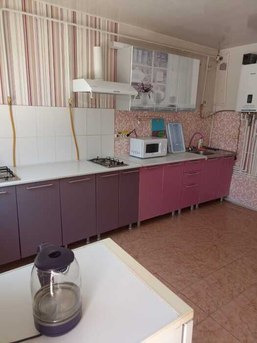 Двухкомнатный дом, 50 м2, с 2 санузлами, с отдельными входами, кондиционерами, тв, интернетом, двуспальные кровати 2 шт., односпальная 1 шт., и двухъярусная, 90 на 2 м. На кухне: плита встроенная, двухкомфорочная, газовая, на столешнице, возле мангала. Имеется своя зона барбекю и летняя кухня.