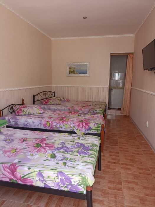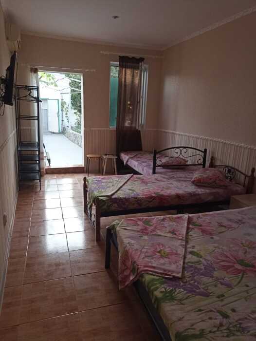 Двуспальная кровать, 2 односпальные, тв, кондиционер, холодильник, душ, умывальник, свой туалет летний.