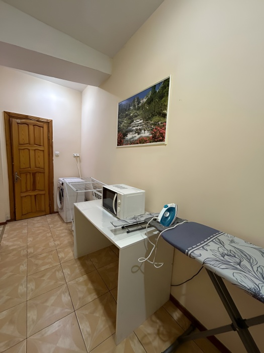В общем коридоре вы найдете микроволновую печь, стиральную машину, гладильную доску и сушилку для белья все для вашего комфорта и удобства. Для заботы о вашем транспорте у нас есть удобная стоянка для машин, которая входит в стоимость. А если вам нужны отчетные документы или трансфер, мы с удовольствием предоставим их за отдельную плату.