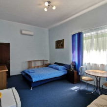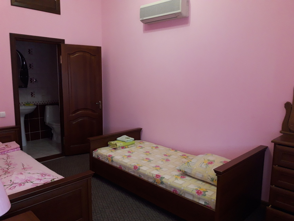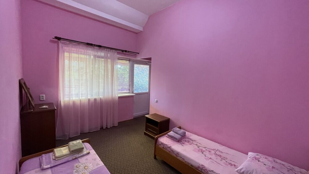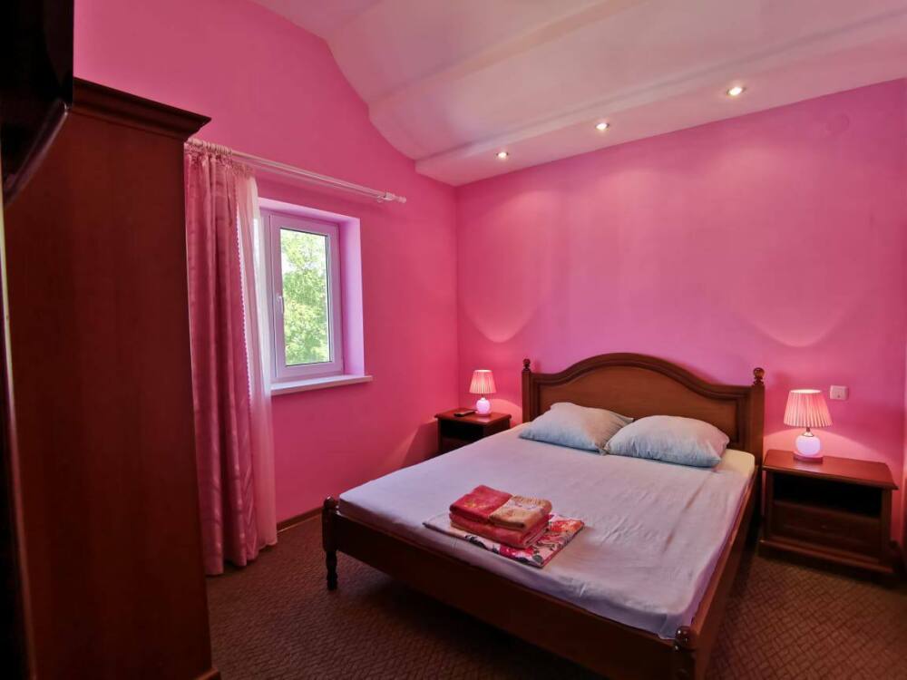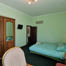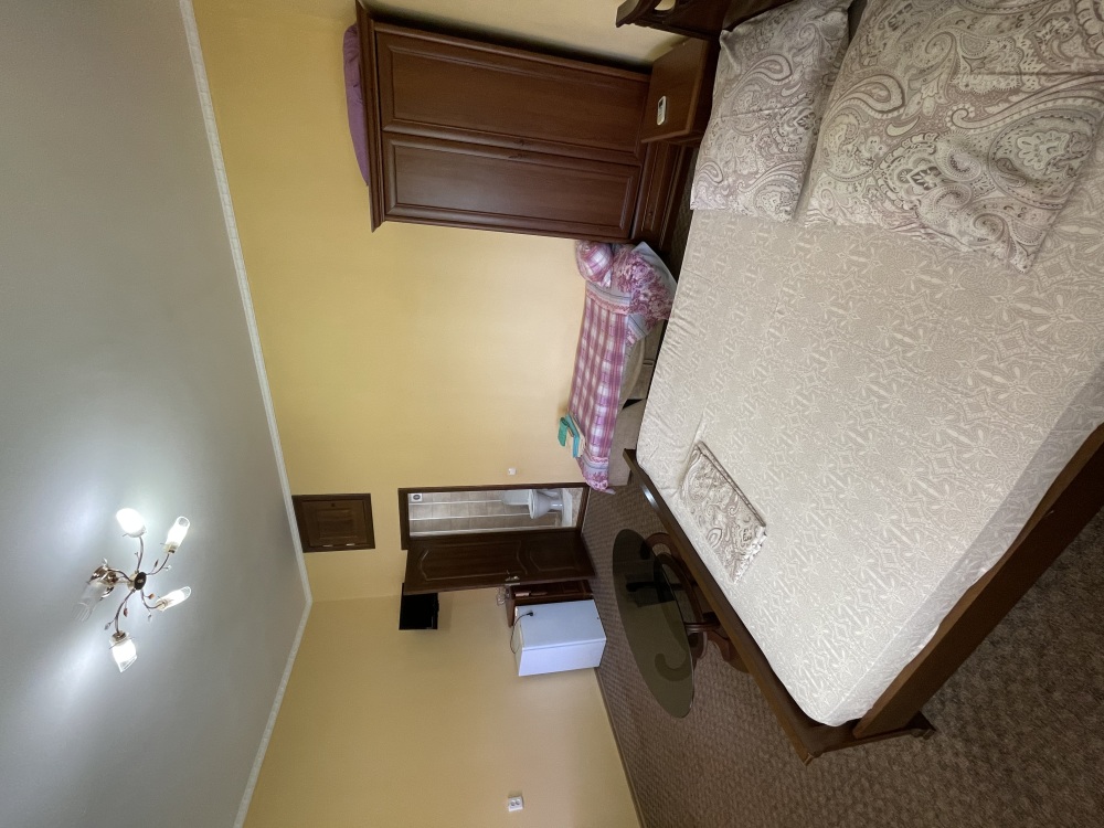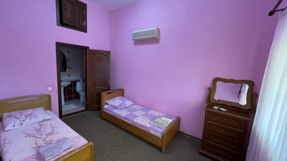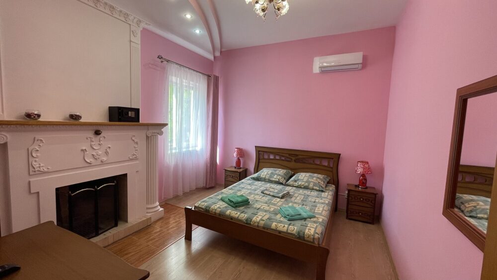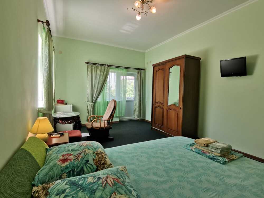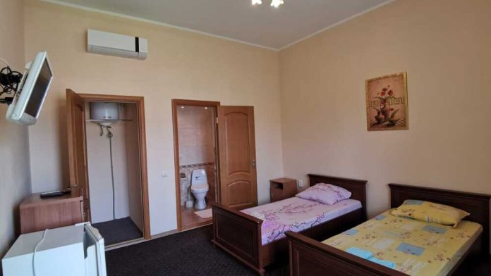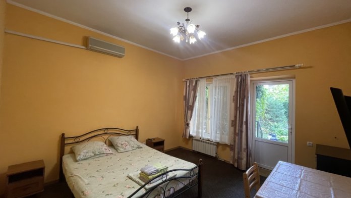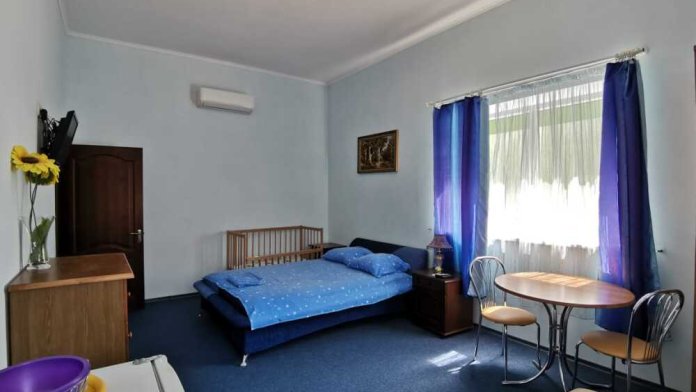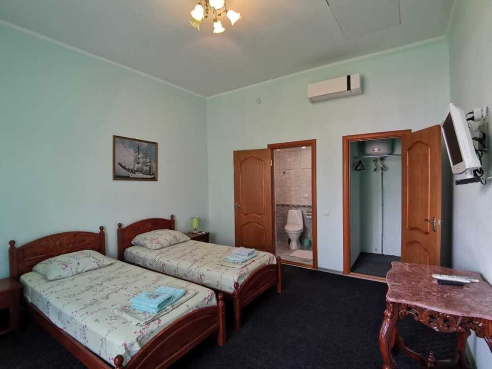 В номере: двуспальная кровать;кресло-кровать; санузел;холодильник;телевизор;сплит-система;мебель