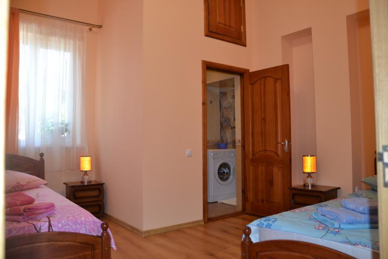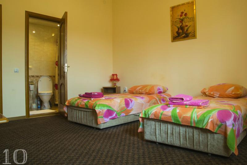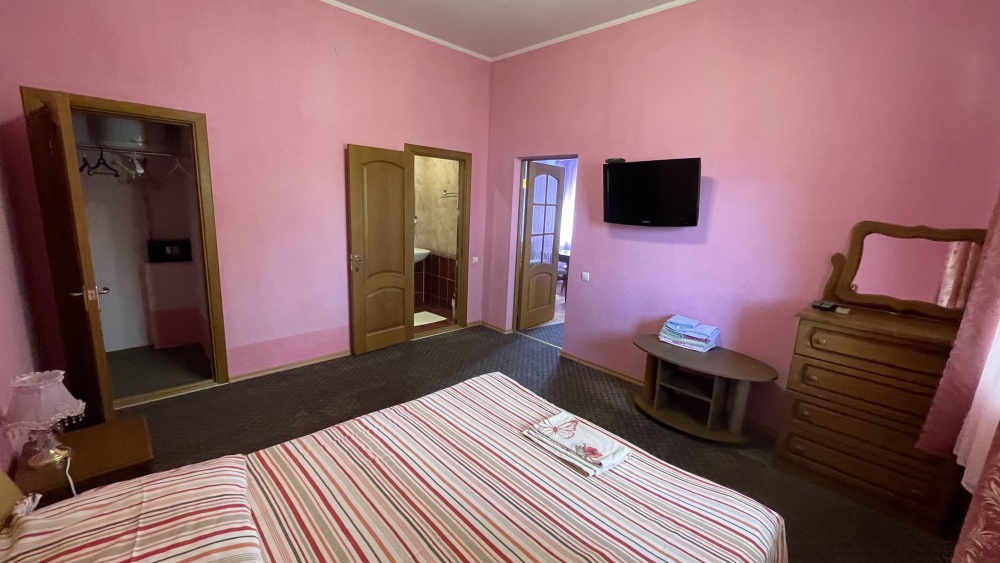 В номере: двуспальная кровать; две односпальные; сплит-система; холодильник; телевизор; сейф; мебель; два санузла; стиральная машина; набор посуды; мини-кухня.