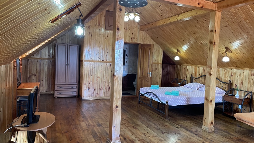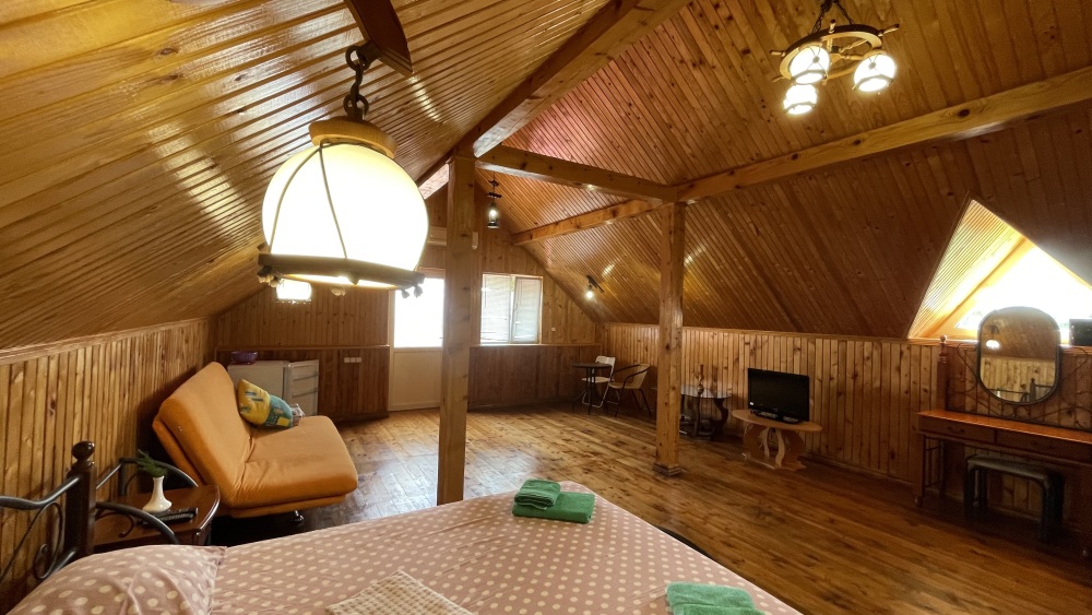 Очень большой по площади и уютный семейный номер со всеми удобствами.