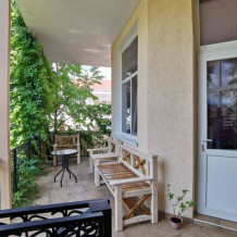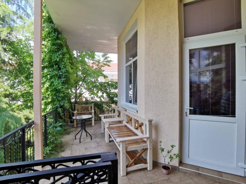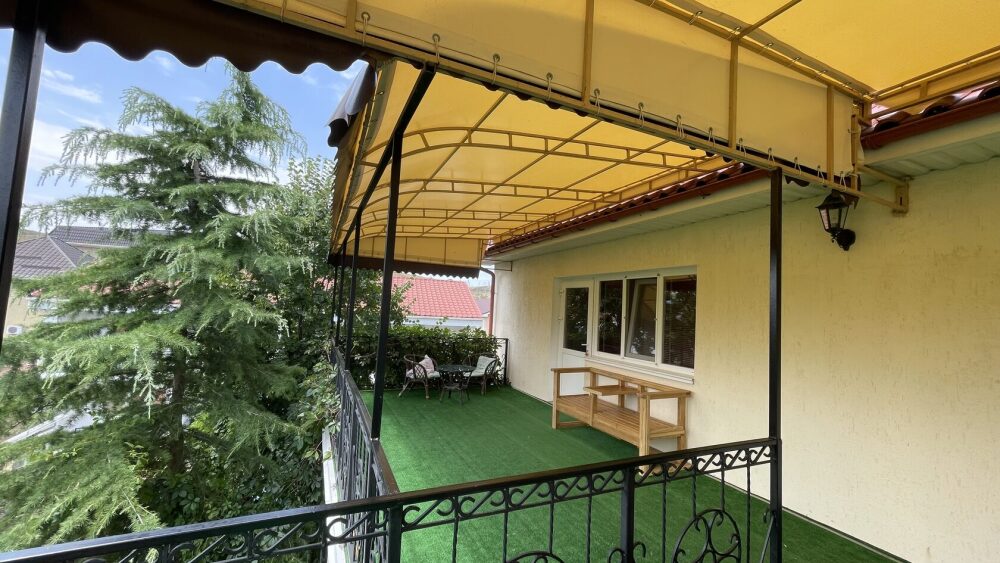 На территории пансионата есть тихий внутренний дворик с двумя беседками, мангалом для барбекю и детской площадкой. Так же для детей есть настольные игры, бадминтон, скакалки, настольный теннис, волейбольный мяч, бумага для рисования, фломастеры, карандаши, краски, пластилин, батут. На втором этаже жилого корпуса находится общая терраса, с которой открывается прекрасный вид.