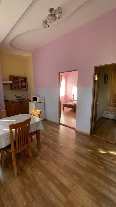 Удобный трехкомнатный номер для семьи с детьми или компании. В номере есть кухня для самостоятельного приготовления пищи, санузел с ванной.