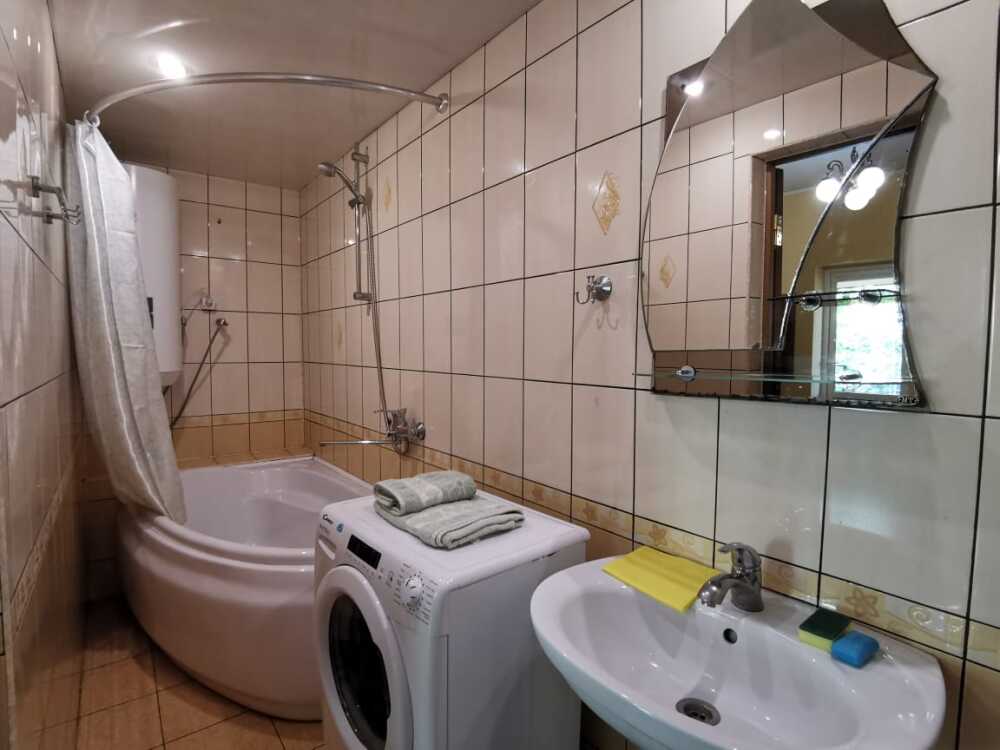 В номере: двуспальная кровать; две односпальные; сплит-система; холодильник; два телевизора; сейф; мебель; санузел с ванной; стиральная машина; набор посуды; чайник; кухня.