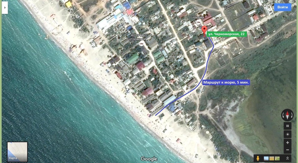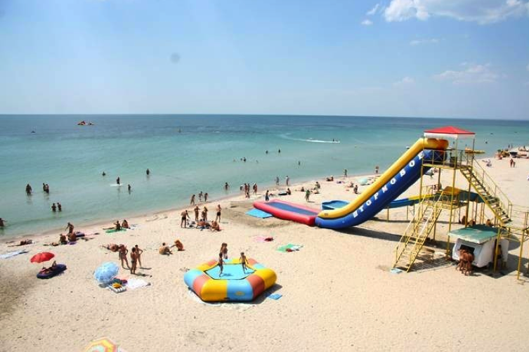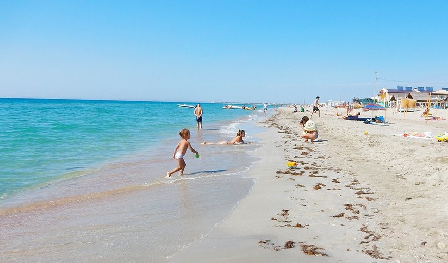 О Штормовом: Климат морской, сочетающийся со степным. Из-за открытой прибрежной полосы вода всегда чистая и быстро прогревается. Вход в море пологий, плавно переходит на глубину, крупных камней нет. Также есть озеро с голубой глиной и озеро с иловой черной сульфатной грязью (для профилактики различных заболеваний суставов, опорно-двигательной системы человека). Инфраструктура посёлка развита, в летнее время работают обширные рынки, точки торговли и отдыха.