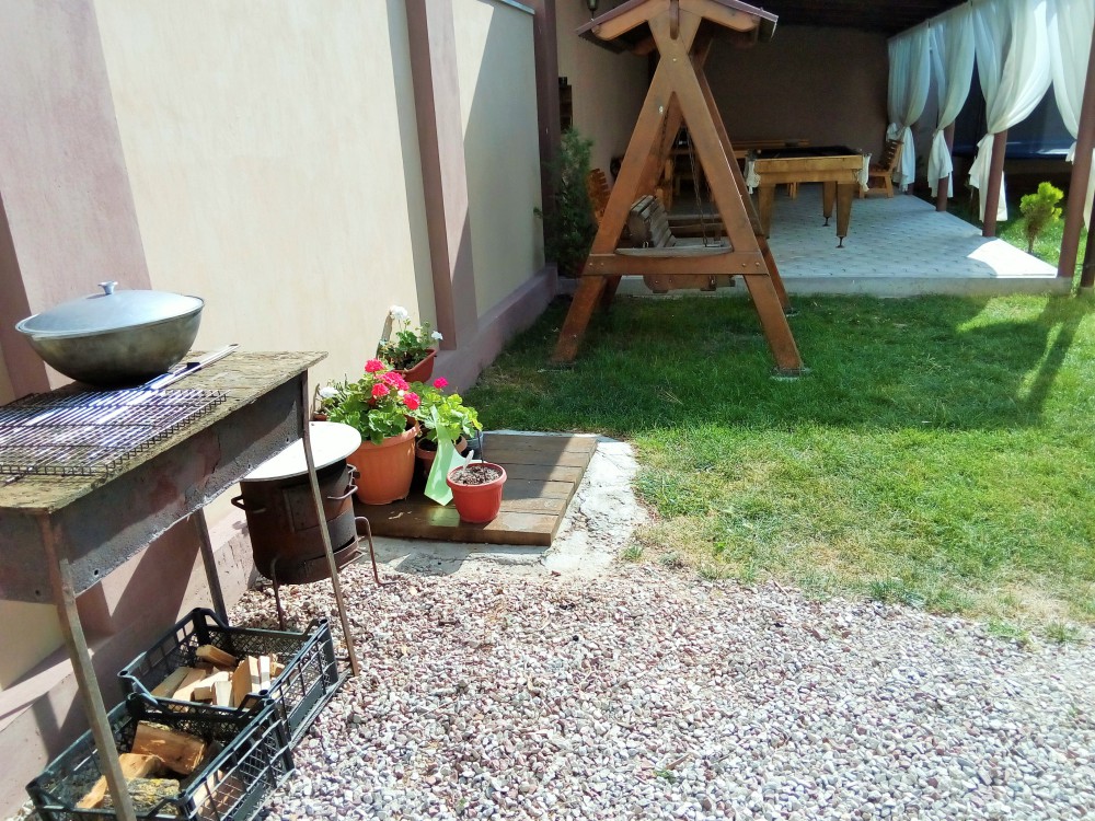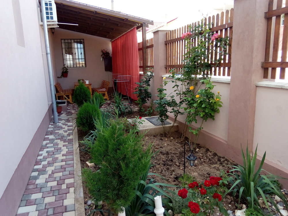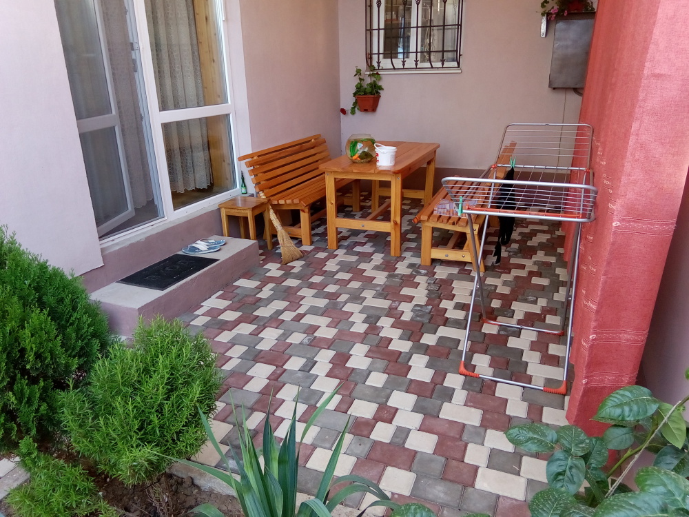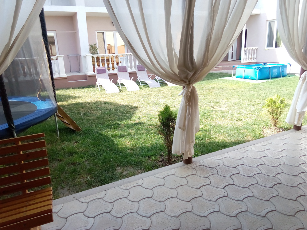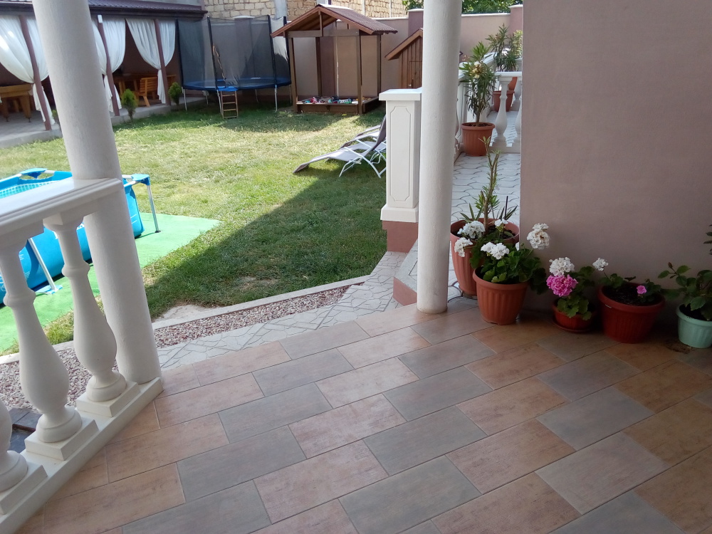 Закрытый благоустроенный двор. Во дворе: детский бассейн, песочница, детский домик, игрушки, садовые качели, бильярд, мангал, беседка.