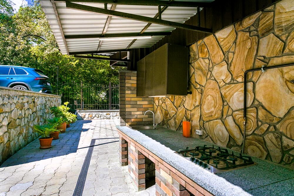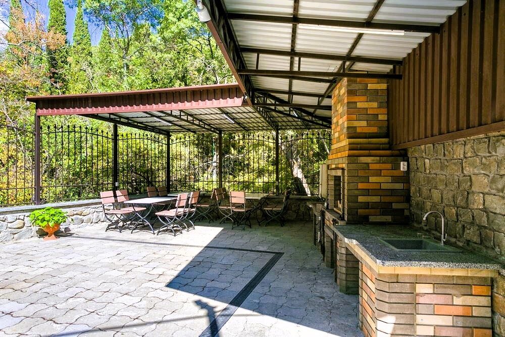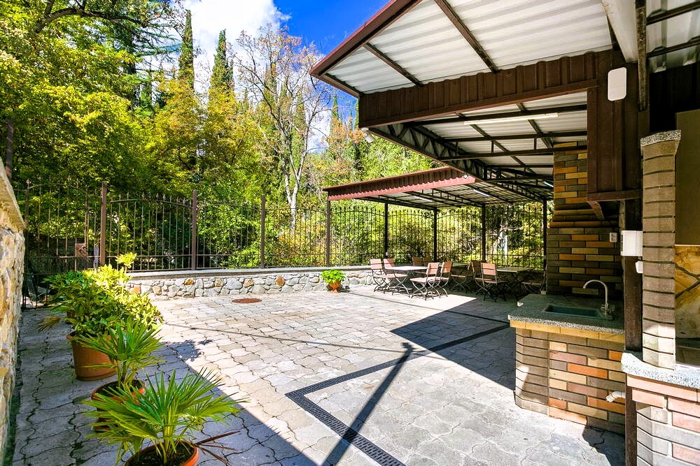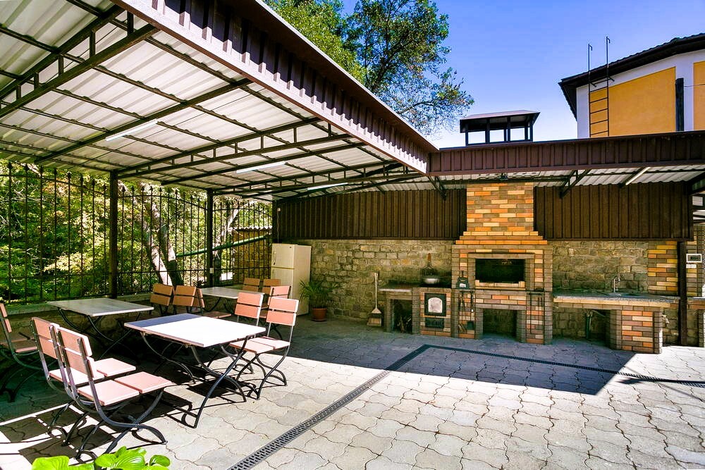 - во дворе мангальная зона, летняя кухня со всей необходимой мебелью и посудой, теплая беседка.