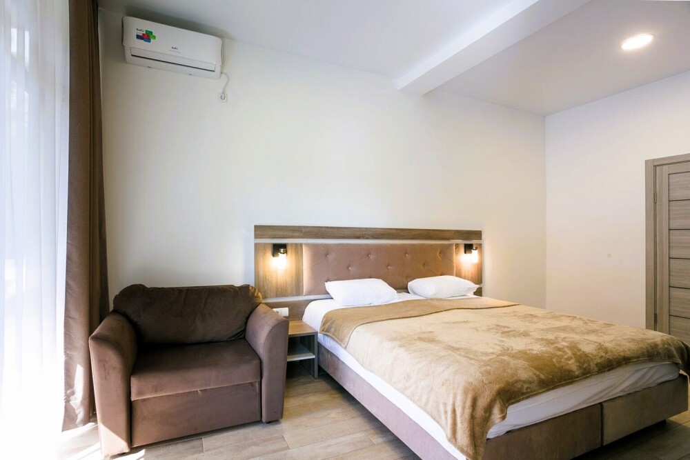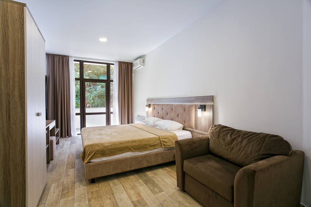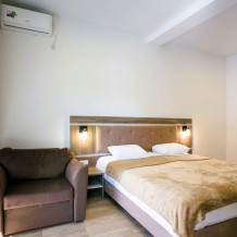 Два номера «Комфорт», 1-комнатные с балконами, расположены на 2 и 3 этажах, площадь 26 кв.м, гостей 2+1.