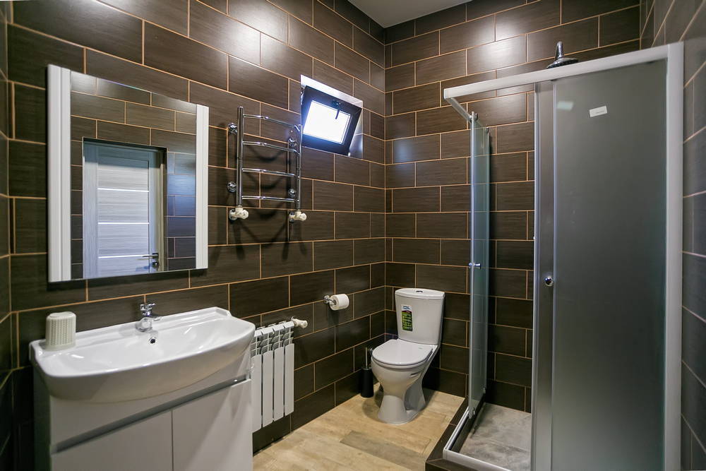 кабинкой на 2 этаже и ванной на 3 этаже.