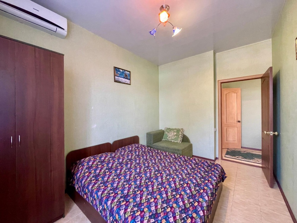 шкаф, пуфики, прикроватные тумбочки, журнальный столик, комод, вешалка, зеркало; телевизор и кондиционер в каждой комнате