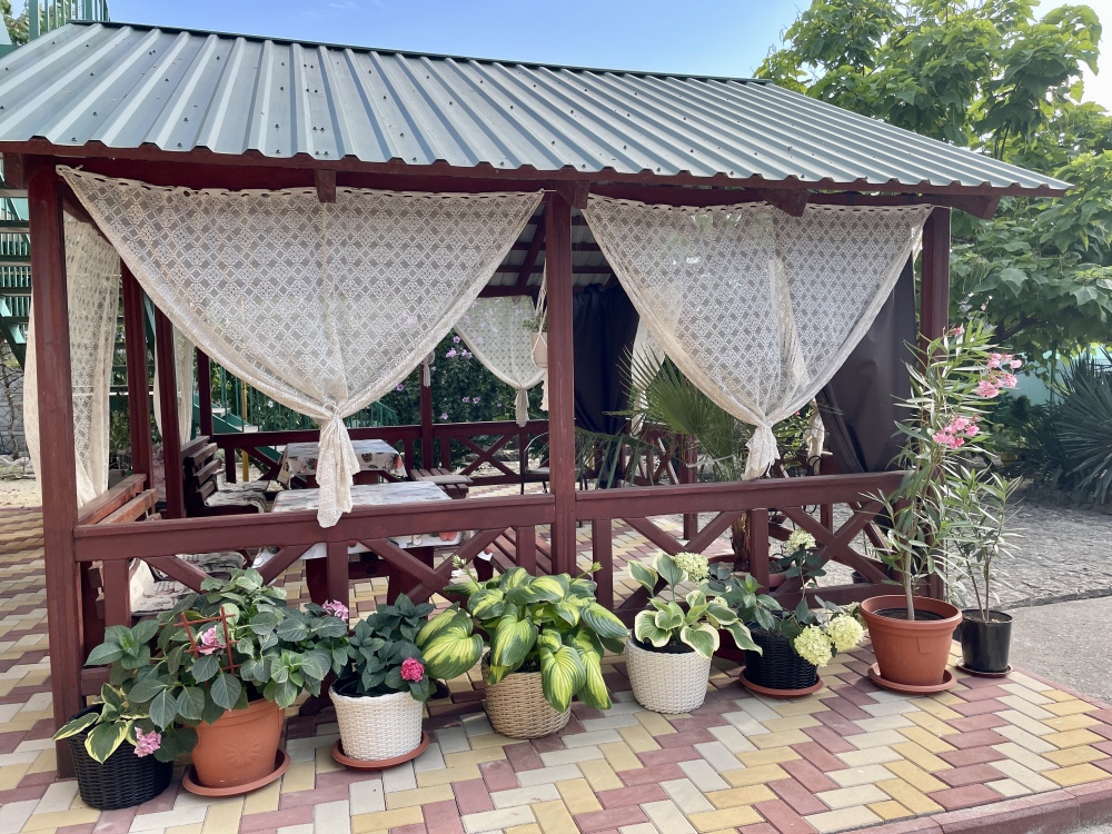 Для комфортного времяпровождения предоставляются беседки, чайхана, мангалы для барбекю и шашлыка . Напротив нашего гостевого дома продуктовый магазин, рядом, всего в 3-х минутах ходьбы: мини-рынок, магазины, кафе и экскурсии.