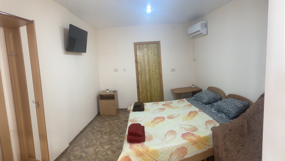 Однокомнатный номер для размещения 2-х человек (13-15 кв.м). Возможно доп.место. В номере: односпальные кровати, шкаф, прикроватные тумбочки, журнальный столик, зеркало, вентилятор телевизор, холодильник. В ванной комнате: туалет, душ, умывальник.