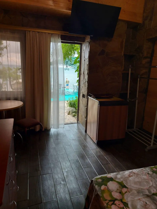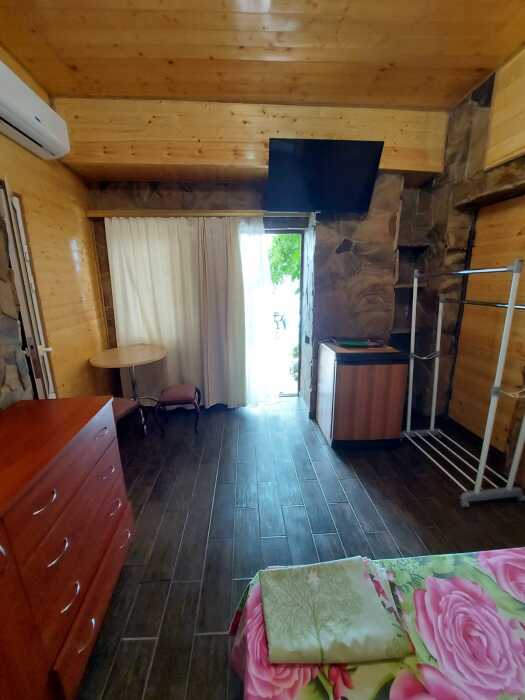 Туалет в номере, душ в номере. В номере новая мебель, современный ремонт. Номера оборудованы холодильником, телевизором, кондиционером. Действует Wi-Fi. Огромная терраса на два номера с великолепным видом на море, мангалом, столиками и шезлонгами.
