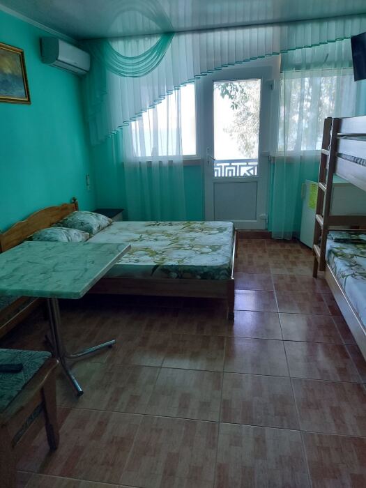 В номере большая 2-х спальная кровать, плазма, кондиционер, холодильник, душ, санузел в номере. Номер расположен вблизи моря.