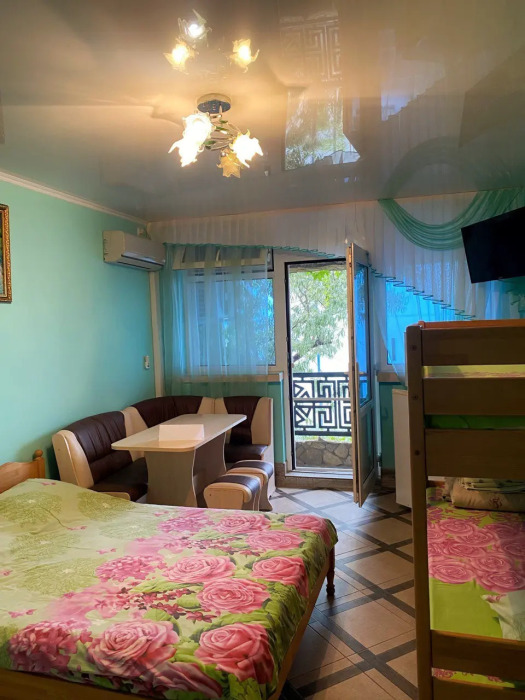 Номер с балконом с видом на море. Туалет в номере, душ в номере. В номере новая мебель, современный ремонт. Номера оборудованы холодильником, телевизором, кондиционером. Действует Wi-Fi.
