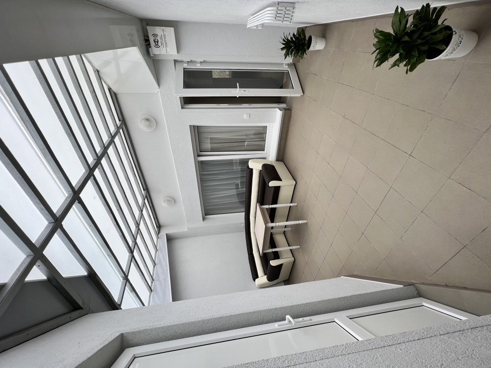 Оригинальный проект и дизайн c балконом-верандой с креслами и столиком.