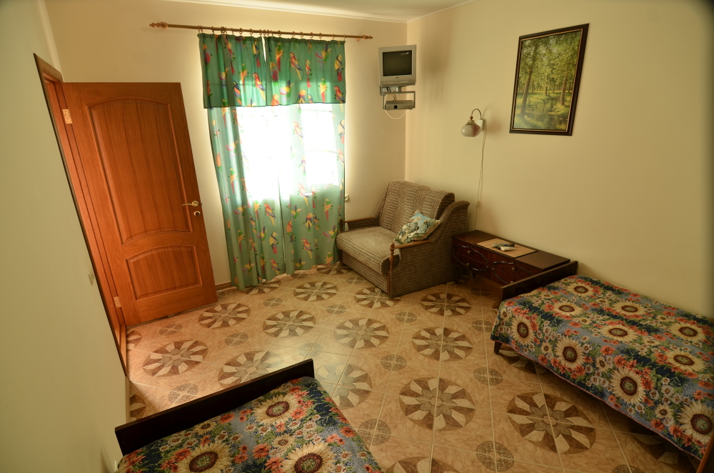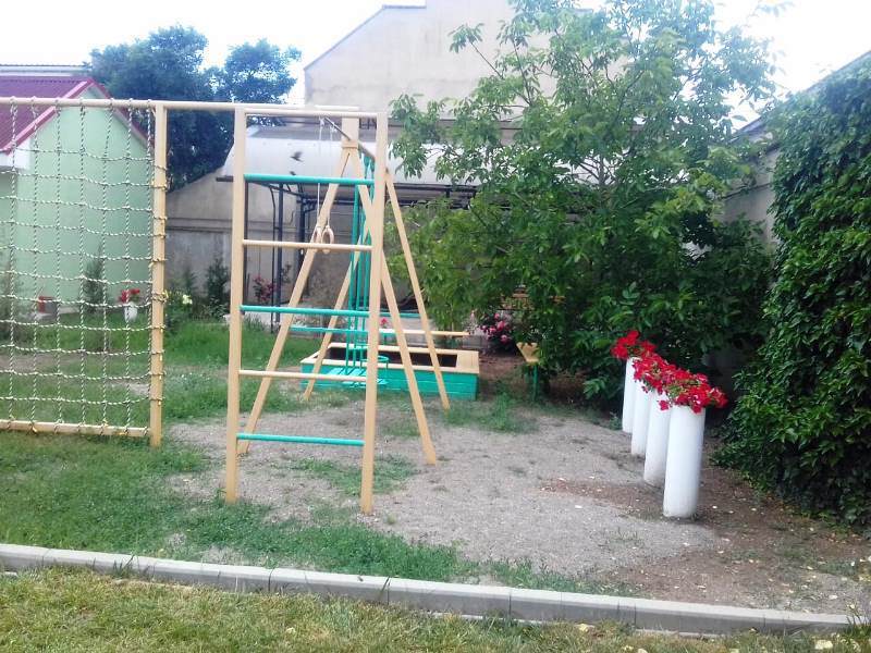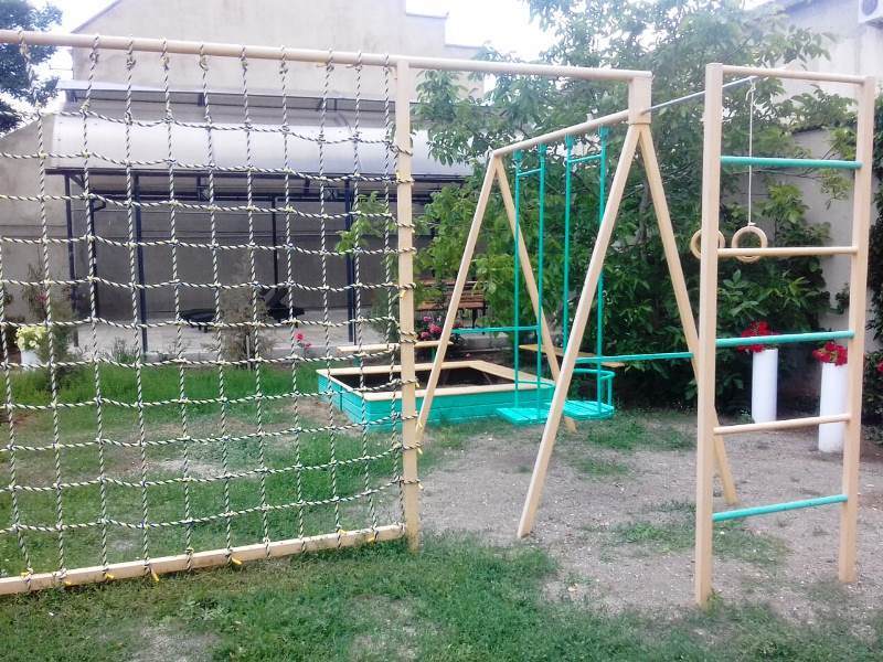 Мы предлагаем своим посетителям ЭКО-номера повышенной комфортности категории «Стандарт» и «Полулюкс» - 12 номеров. В номерах нет токсичного пластика, синтетических материалов, текстиль - только натуральный. Гости могут отдыхать в общем лаундже. Для детей предусмотрена детская площадка с песочницей и качелями, а для детей постарше есть спортивная площадка с турником. Также к Вашим услугам беседки, где можно провести время семьей! В одной из них настольный теннис.