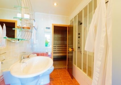 Для разнообразия своего досуга воспользуйтесь финской сауной. Парилка, бассейн, комната отдыха с удобной мягкой мебелью, телевизор, музыкальный центр, посуда и чайник, массажный кабинет.