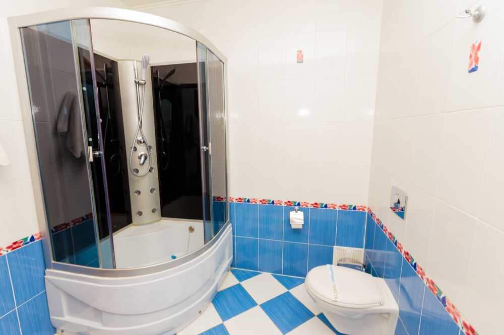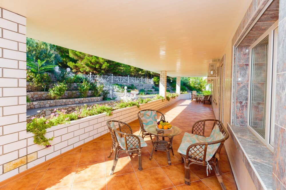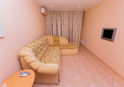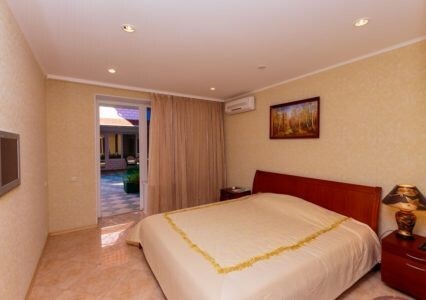 Двухкомнатный номер с двумя ванными комнатами, расположен в «Итальянском дворике», терраса в уютном зеленом оазисе. Идеальное место для тихого уютного отдыха.