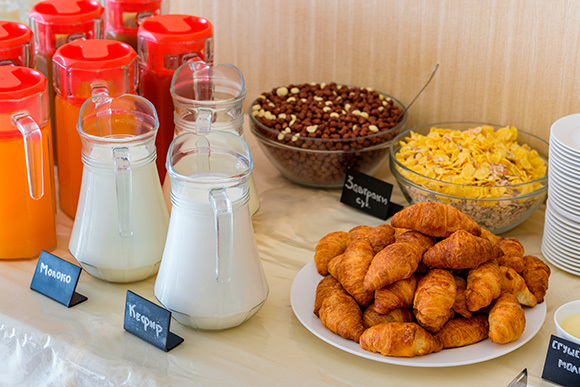 На территории работает ресторан. Тип питания «завтрак в отеле» с обслуживанием по системе «шведский стол». Обращаем Ваше внимание, что питание по системе «шведский стол» организовывается в зависимости от сезона и заполняемости отеля. При необходимости Вы можете дозаказать завтрак, обед или ужин на месте, во время или после заезда. В летнее время гости могут воспользоваться пляжным кафе, в котором представлен широчайший выбор блюд итальянской и европейской кухни.