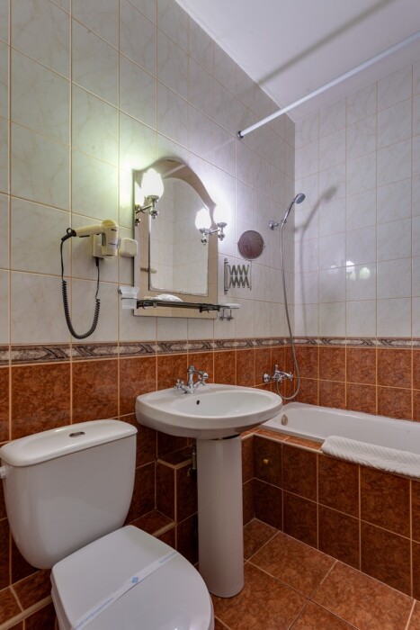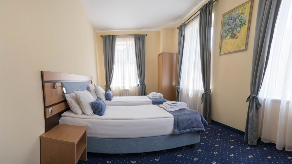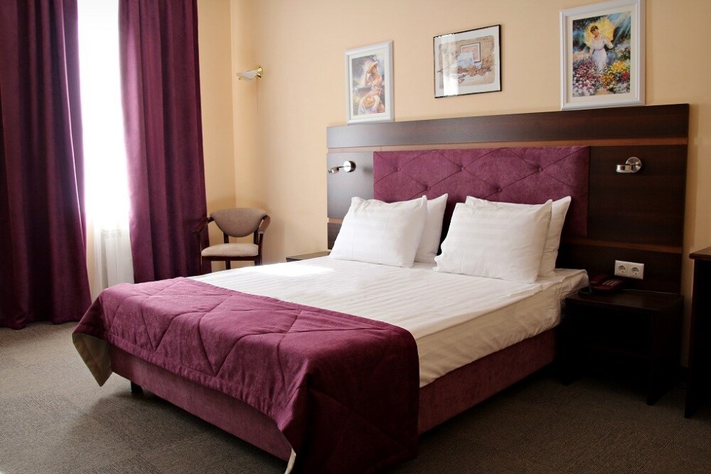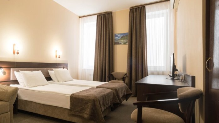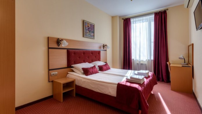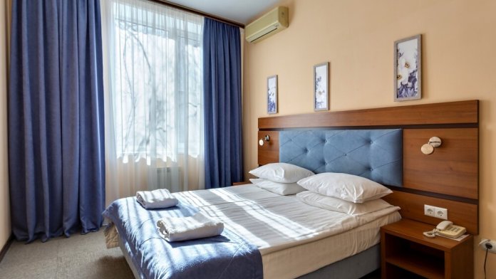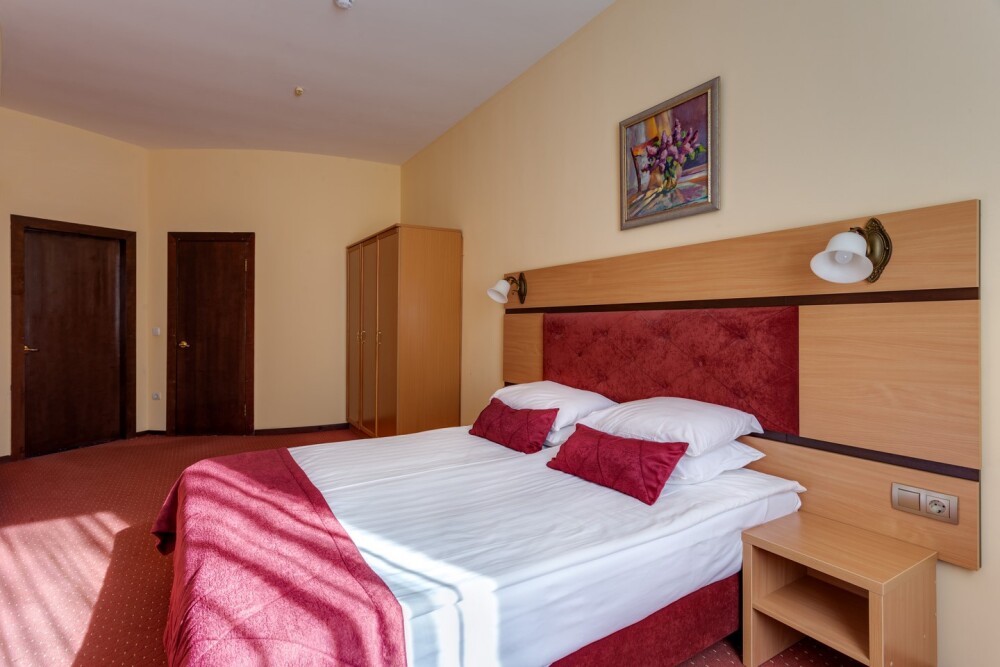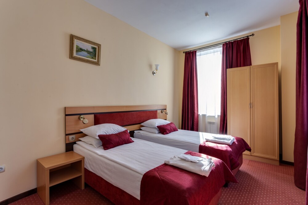Номер Стандарт А - однокомнатный двухместный номер, с одной двуспальной или с двумя раздельными кроватями. Номера на 2-м, 3-м, 4-м этажах.