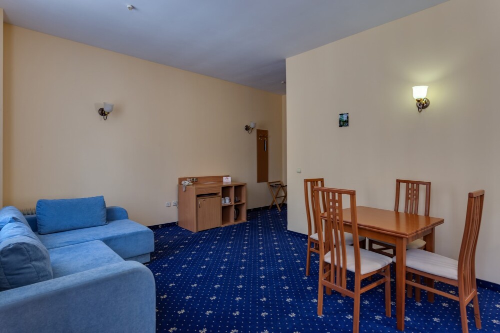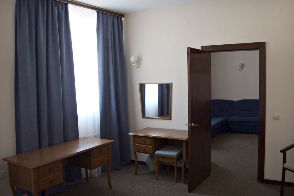 Номер Семейный класса А - трёхкомнатный номер, в первой спальной комнате две раздельные кровати, во второй спальной комнате двуспальная кровать, в гостиной диван. Номера на 2-м и 3-м этажах.