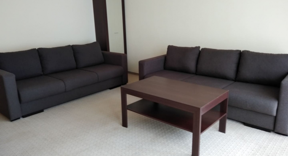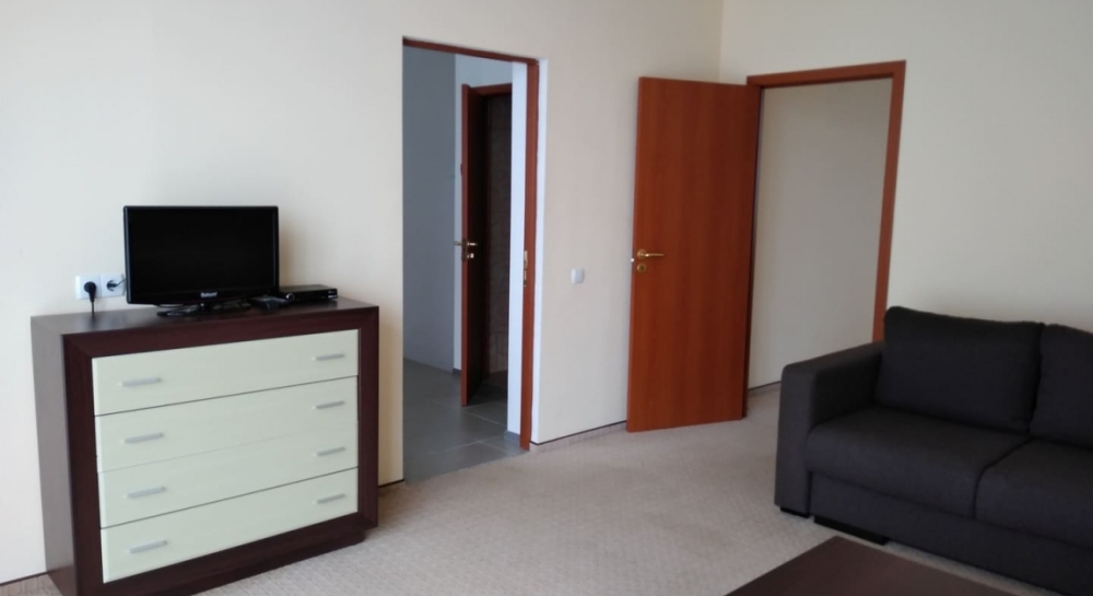 Спальня - двуспальная кровать или 2 односпальные кровати, комод, кондиционер, шкаф, 2 тумбочки, лоджия.