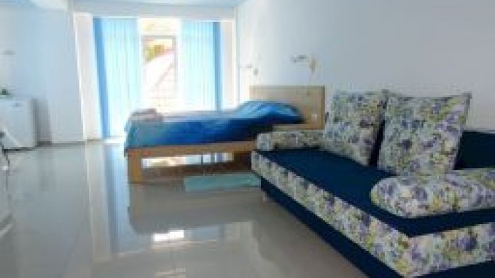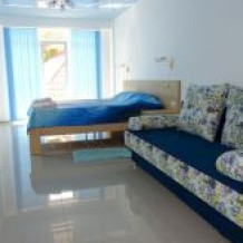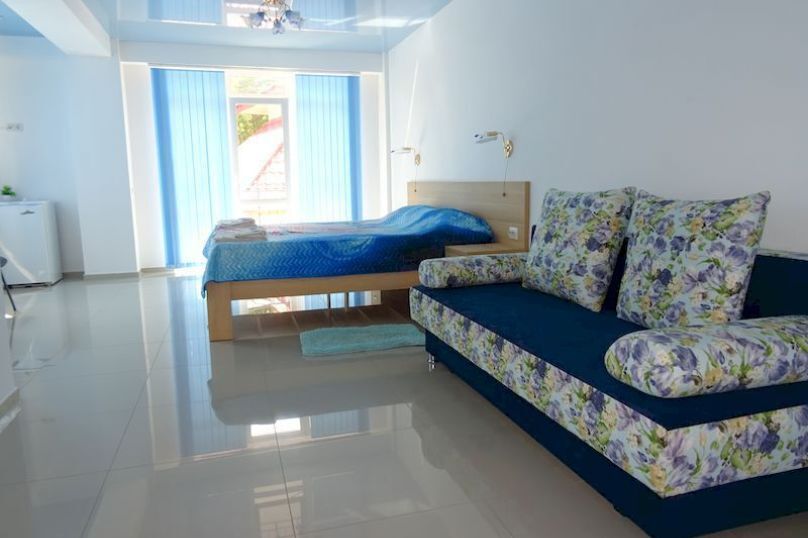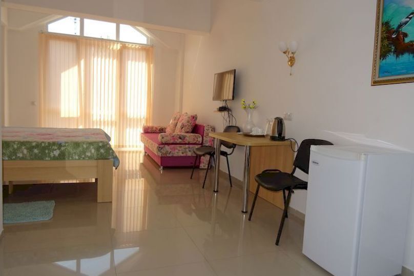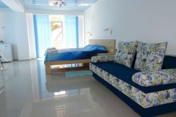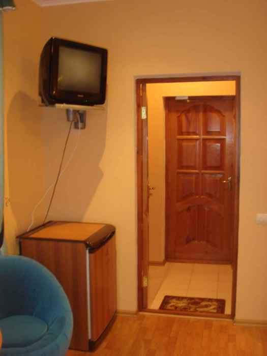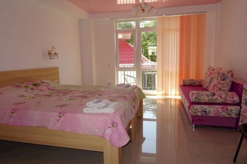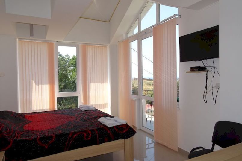 Все номера имеют вид на море, балкон. Частота уборки – ежедневно. Смена постельного белья раз в 3 дня; межкомнатной двери нет.