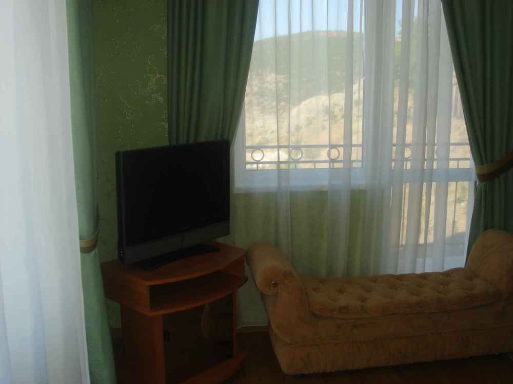 В нашей гостинице Вас ждут уютные, со вкусом оформленные номера, с мебелью из натурального дерева, кондиционерами, телевизорами, холодильниками. Каждый номер имеет балкон с прекрасным видом на море, Балаклавскую бухту и крепость Чембало. Особенной популярностью у гостей гостиницы пользуется двухкомнатный, двухуровневый люкс с шестью балконами и джакузи.