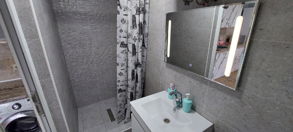 К морю-450 м, 10 минут вниз, от моря 15 мин. К самому жилью нужно подниматься по ступенькам минутки 2-3. Ступени удобные, с бетона. Посёлок маленький местность гористая всё в шаговой доступности. Небольшой подъём в горку сполна компенсируется красивым видом на море.