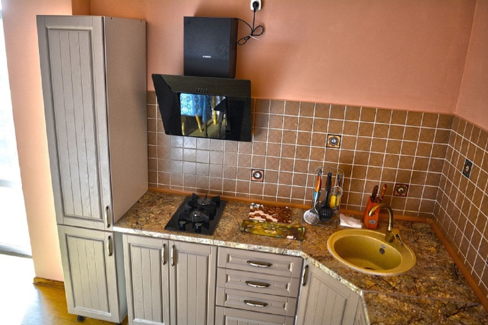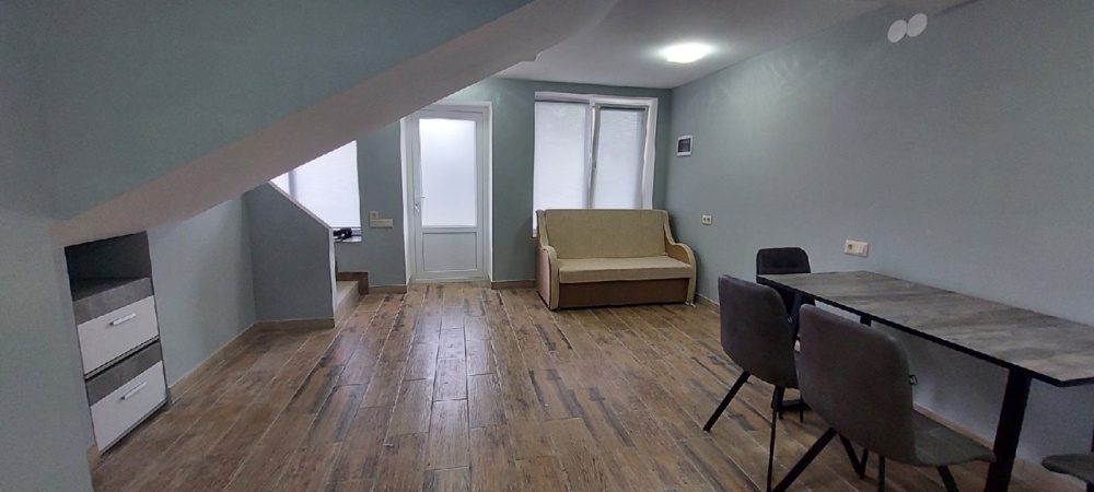 На 1 этаже: кухня, санузел, раскладной диванчик.