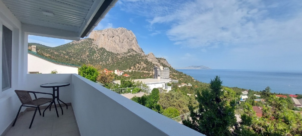 Двухкомнатный номер с балконом и видом на море на 3-6 человек со всеми удобствами. Выход в можжевеловый лес, стоянка для авто, беседка, мангал, интернет, 2-кондиционера, 2 телевизора, большая, кухня, вид с окон на горы.