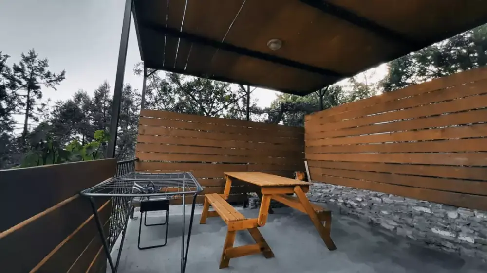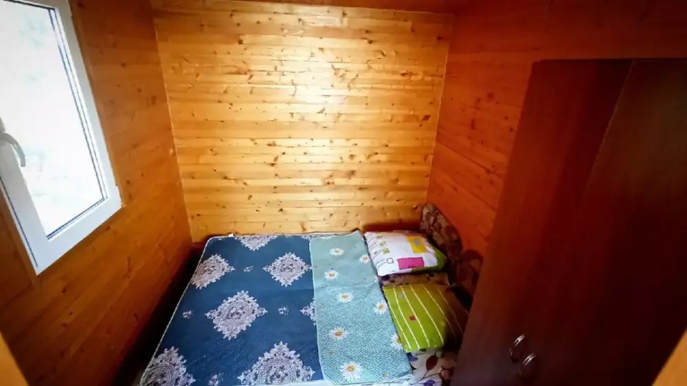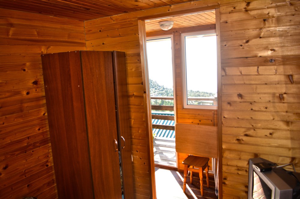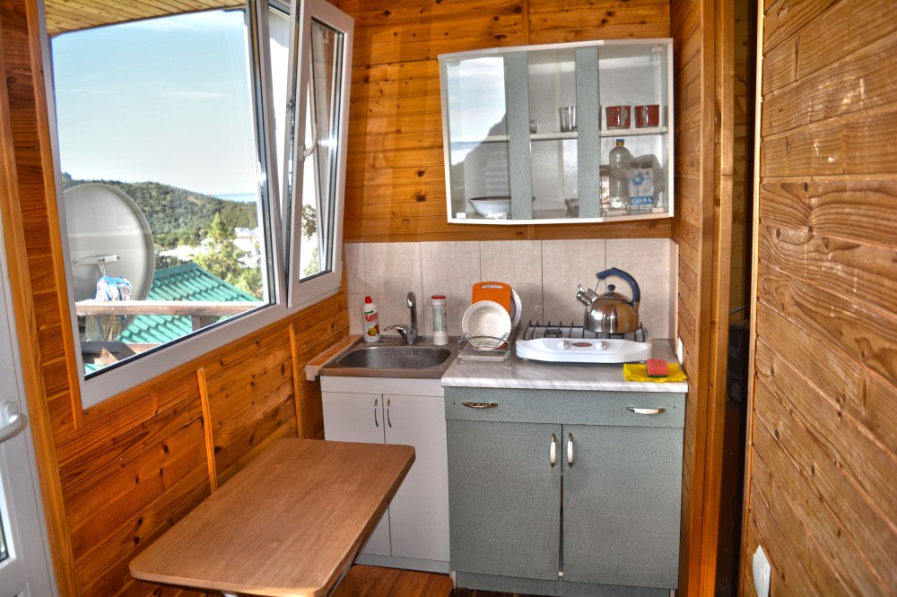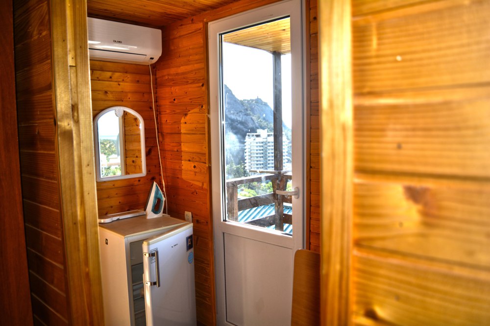 Номер на 2 человека - Двухуровневый деревянный домик со всеми удобствами, с видом на море. Большой балкон, дворик с мангалом, wi-fi в дополнение, кондиционер. Внизу: душ, туалет, стоянка для авто.