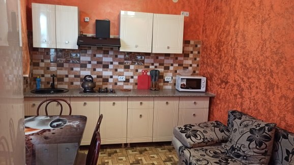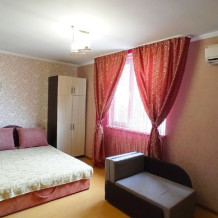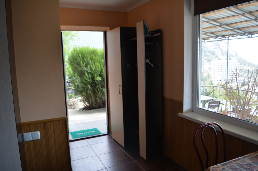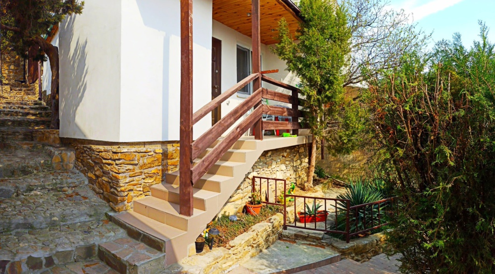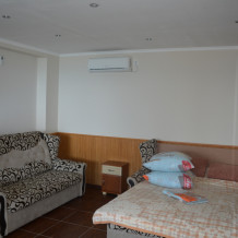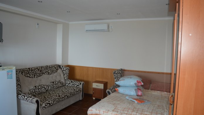 Уютное жильё находится в тихом месте, состоит из: двух 2-комнатных номеров с балконами для 2-6 человек, одного 1-комнатного номера с балконом для 2-3 человек и 4-х домиков с двориками для 2-4 человек, двух коттеджей до 5-ти человек. В 6-ти домиках есть стиралки. Красивый вид на море.