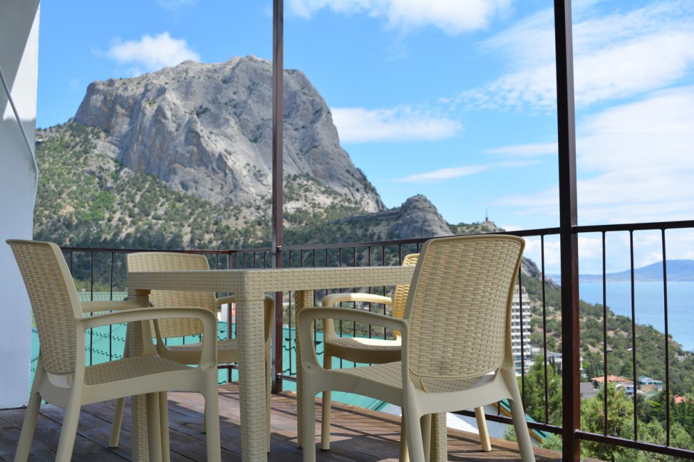 Двухкомнатный номер с балконом и видом на море на 3-5 человек со всеми удобствами. Мангал - рядом возле дома, кондиционер, комнаты проходные, выход в можжевеловый лес, стоянка для авто.