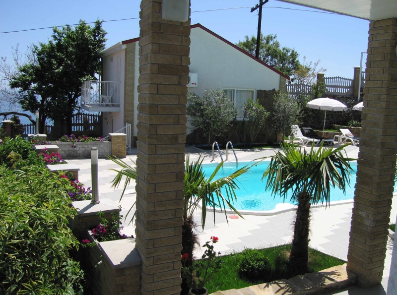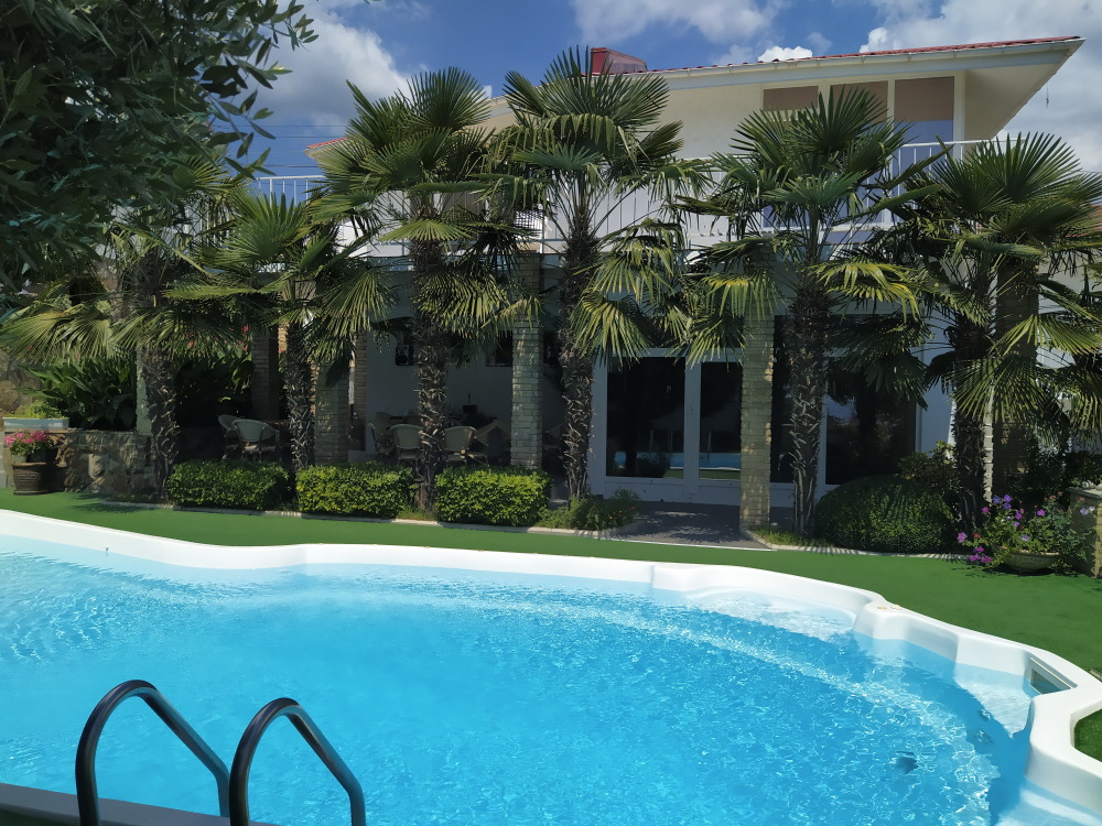 – открытый бассейн, противотоком (встречной волной), подсветкой. Рядом с бассейном зона отдыха с шезлонгами, зонтами. Оливковые деревья мысленно перенесут Вас на Средиземноморские курорты.