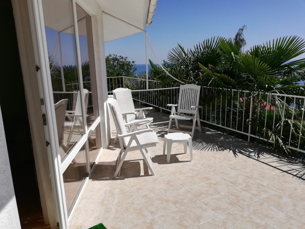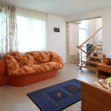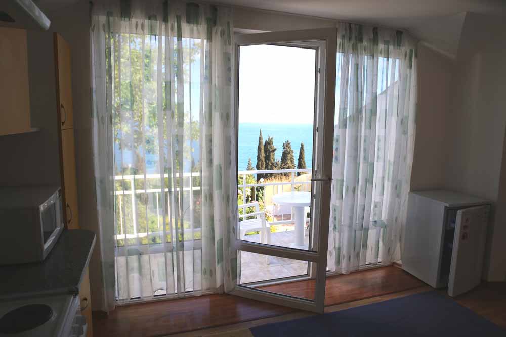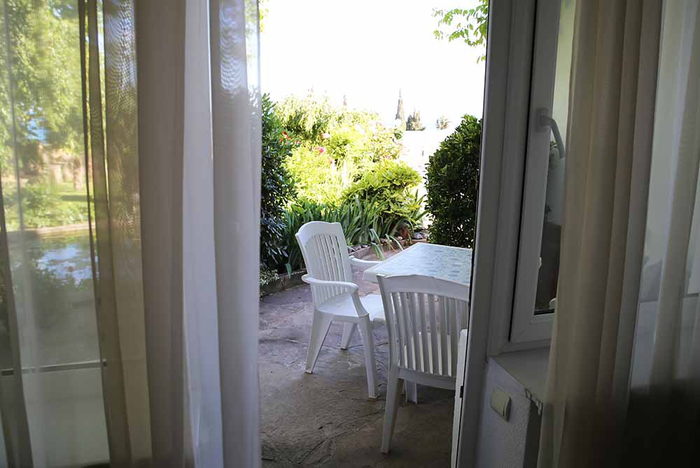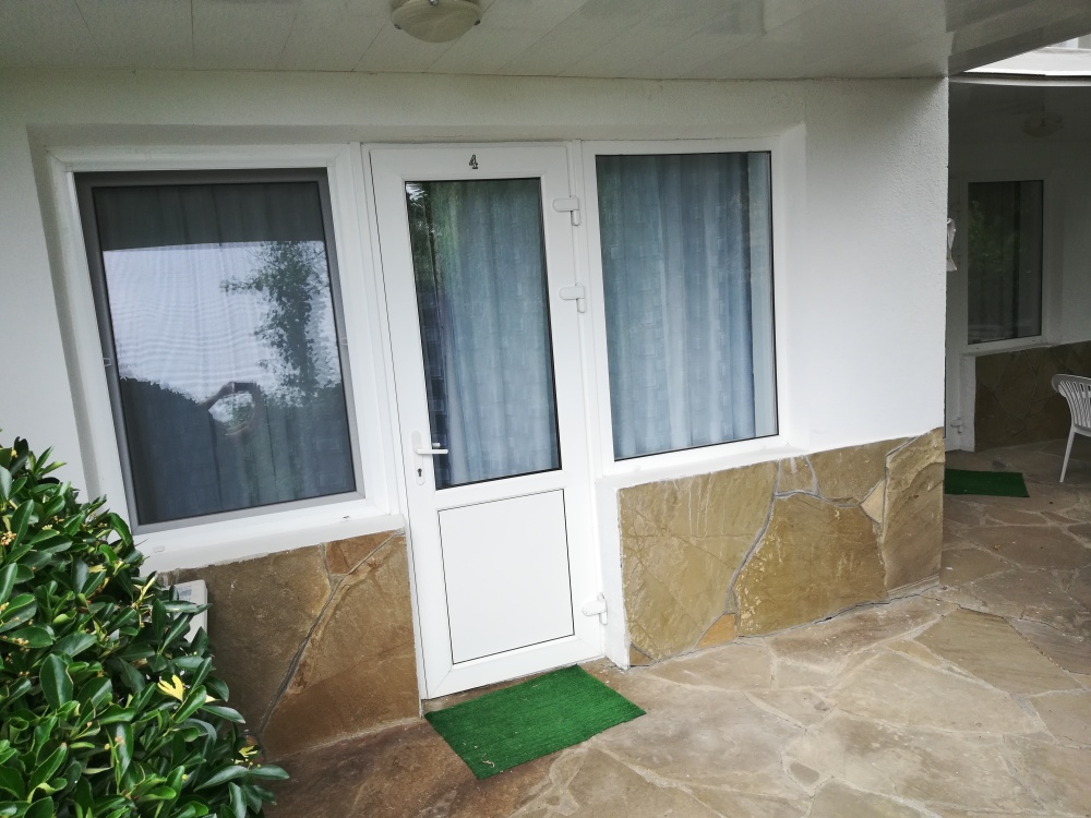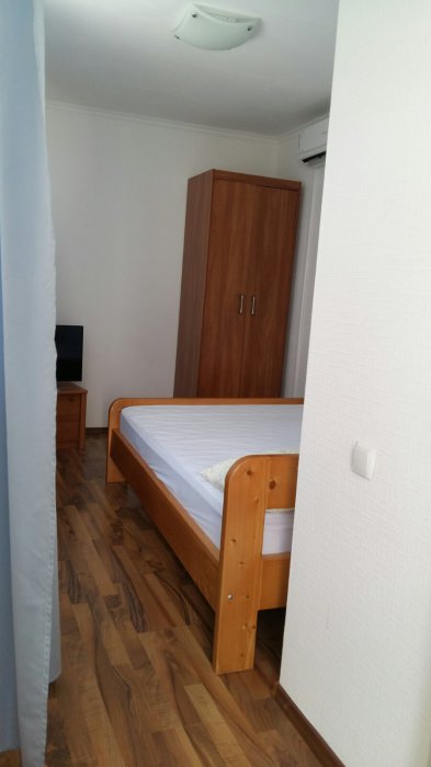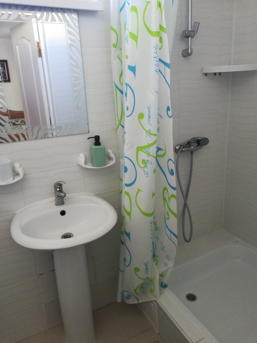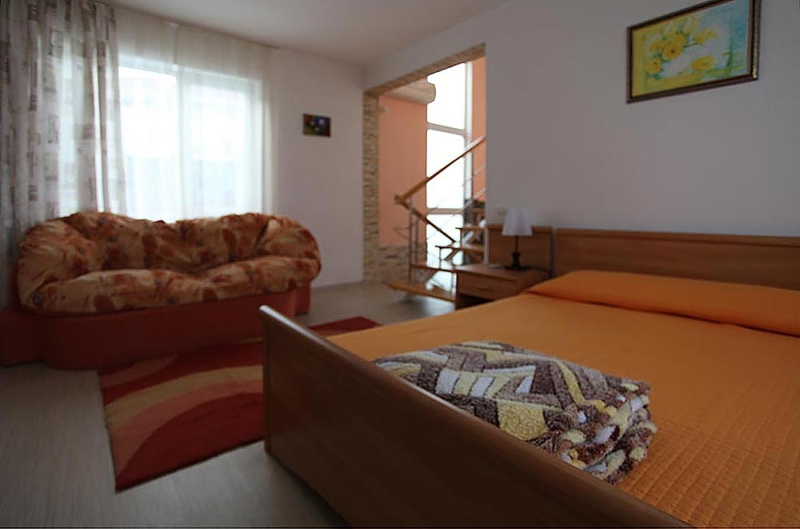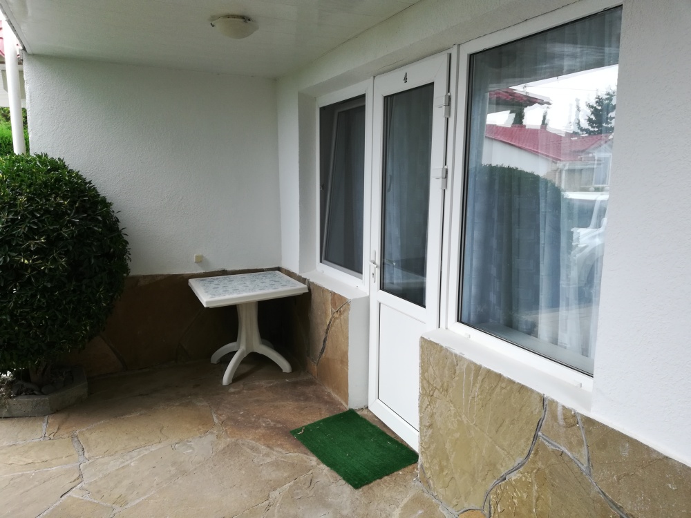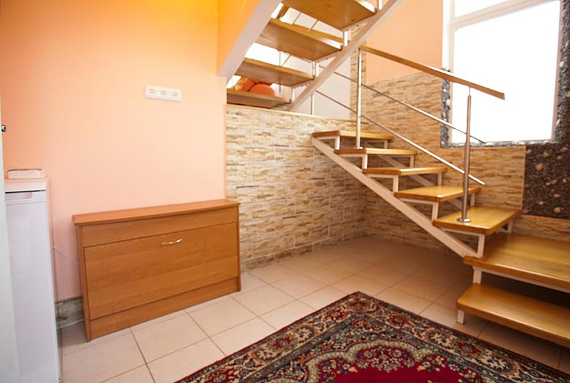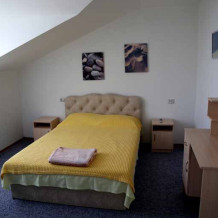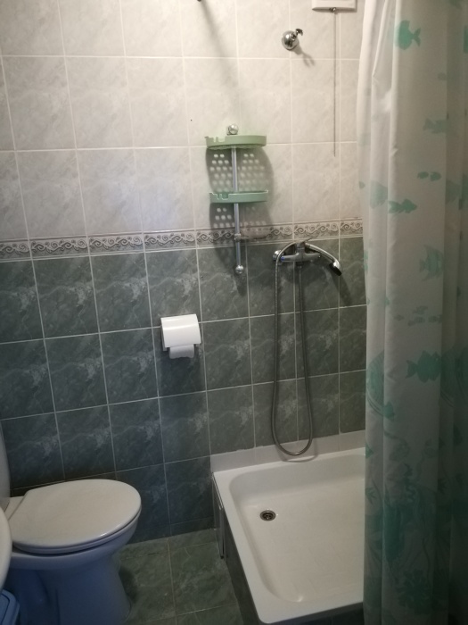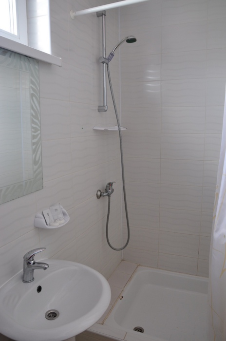 двухкомнатный, 4-местный номер, общая площадь – 44 м.кв.) - Спальня-гостиная (двуспальная кровать, диван, кабельное ТВ, кондиционер), детская комната (2 односпальные кровати), холл (холодильник), санузел (душ, унитаз, умывальник, фен, количество полотенец – 2 на 1 человека). Балкон с видом на море. Летний дворик для отдыха.