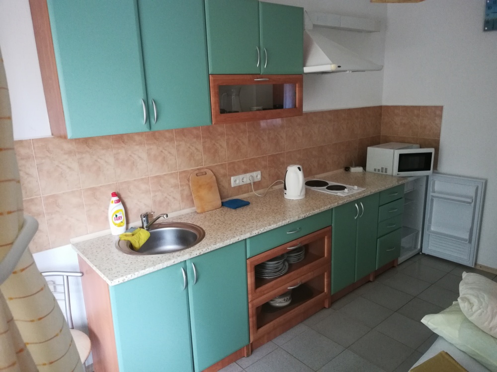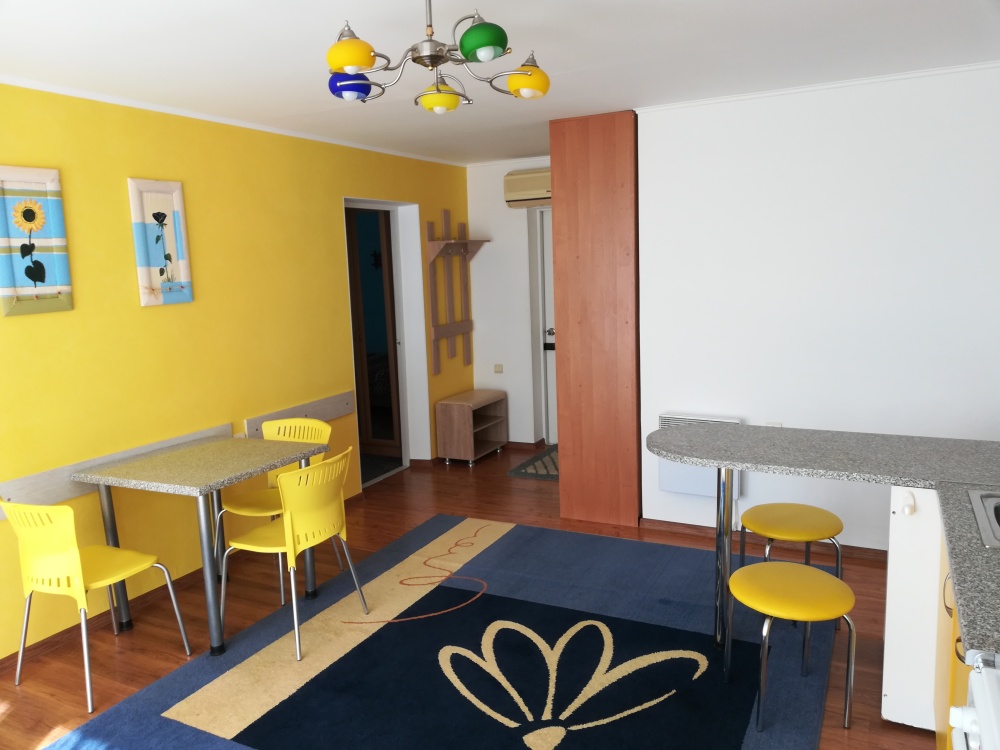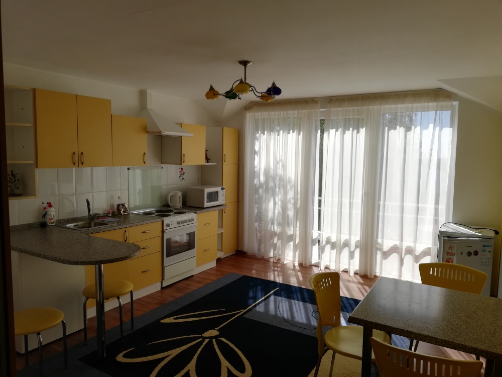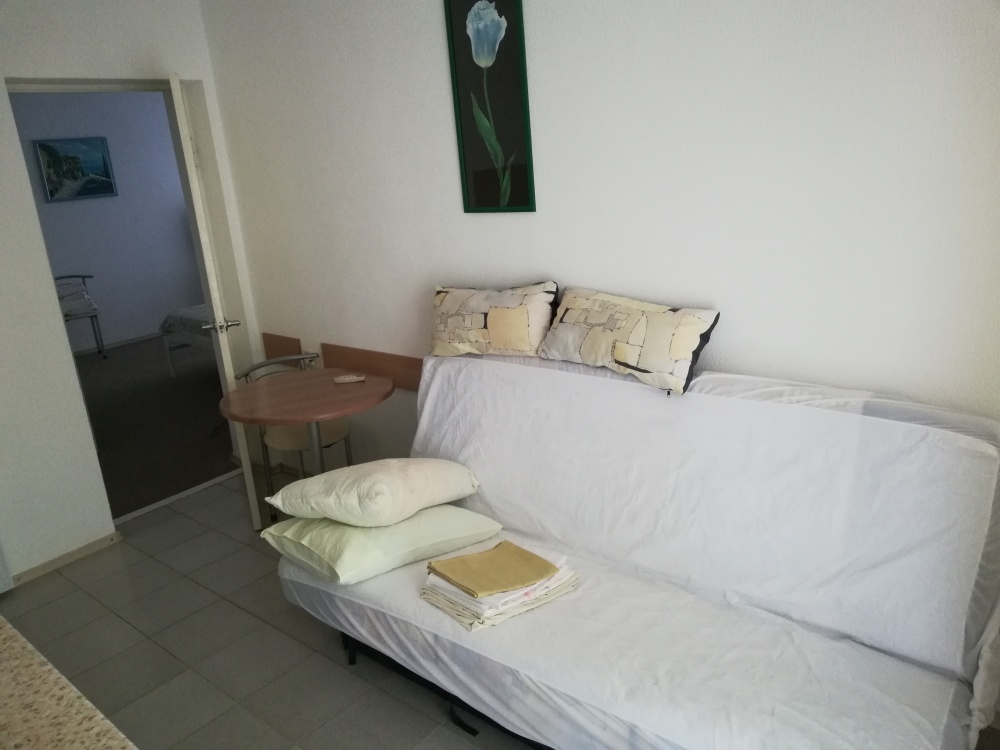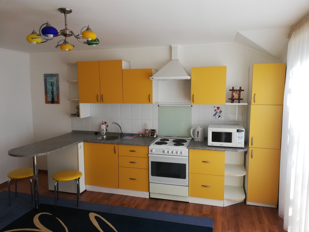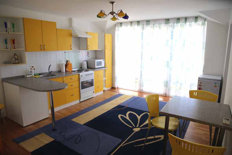 Две изолированные комнаты с санузлами, большая кухня с гостинной (24 м2) со всем необходимым, для ещё большей свободы и независимости, (холодильник, электроплита, микроволновая печь, электрочайник, посуда, кондиционер), два балкона.