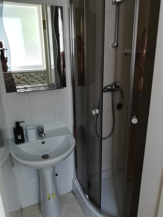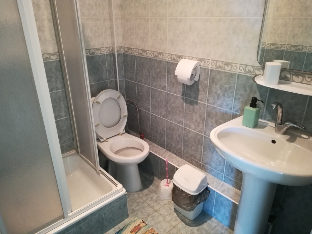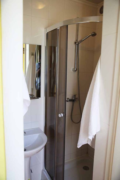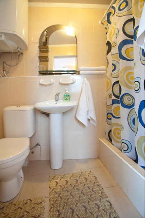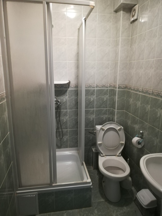 Санузел (душ, унитаз, умывальник, косметический набор, фен, количество полотенец – 2 на 1 человека)