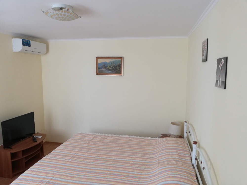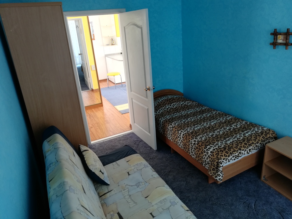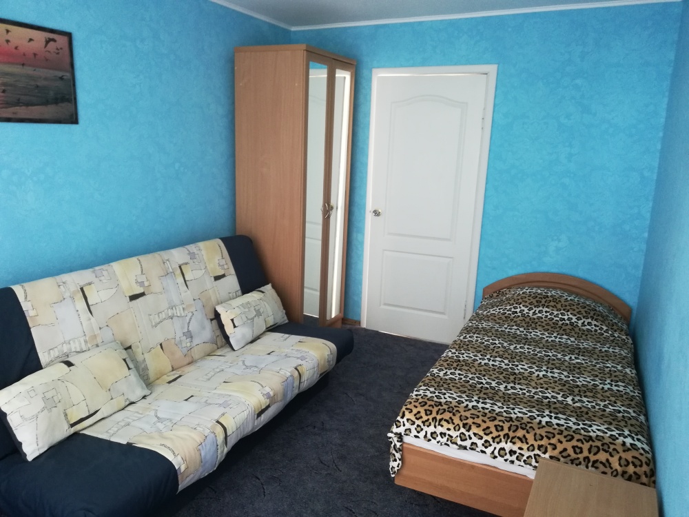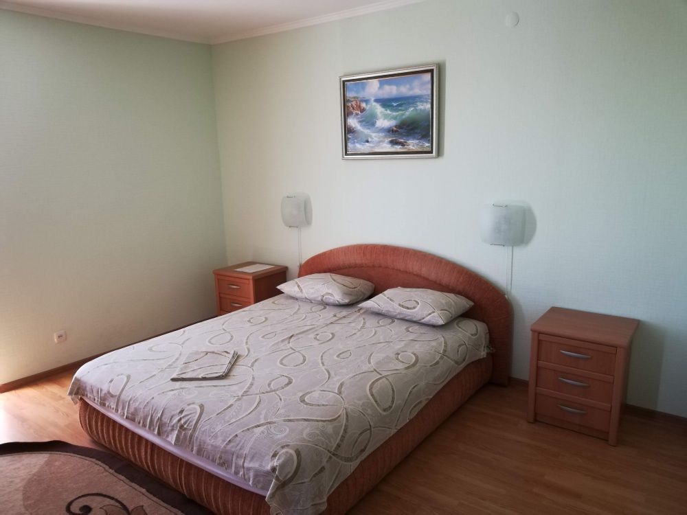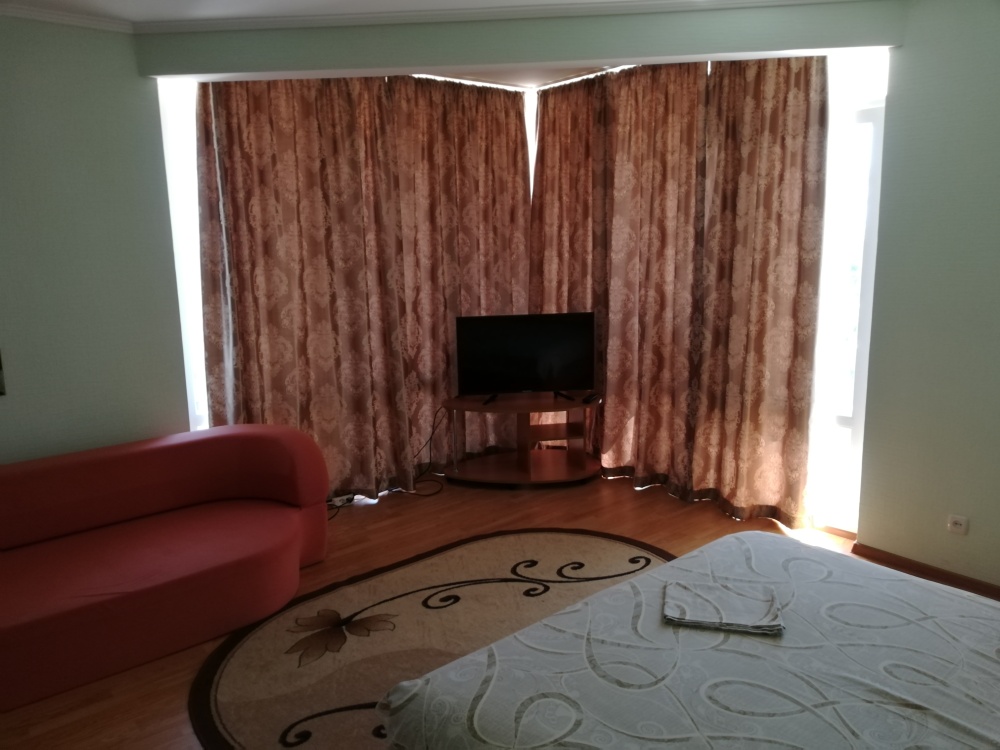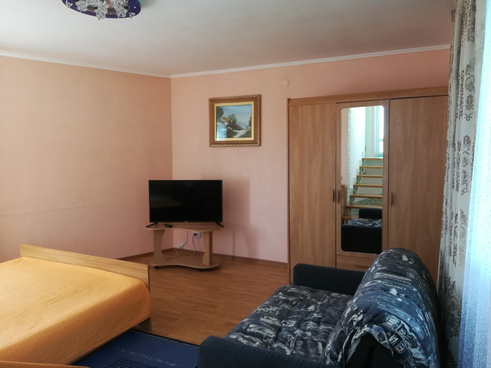 Спальня (двуспальная кровать, кабельное ТВ) с балконом, холодильник, санузел (душевая кабина, унитаз, умывальник, косметический набор, фен, количество полотенец – 2 на 1 человек)+комната с раскладным диваном.
