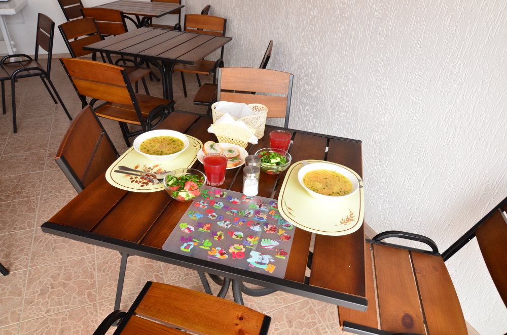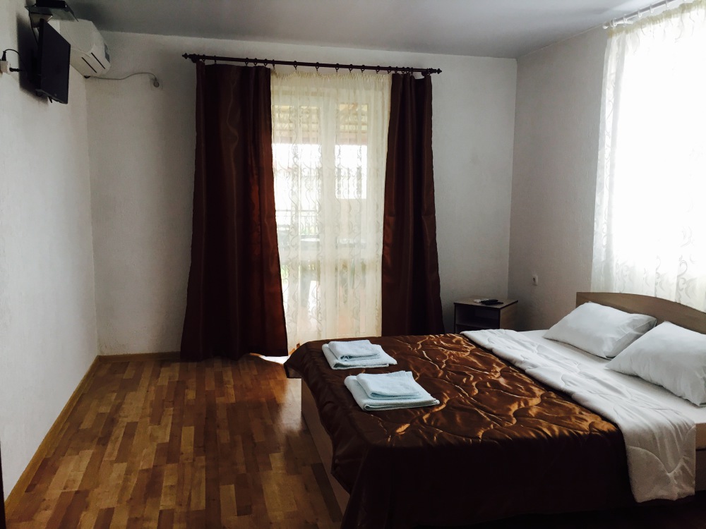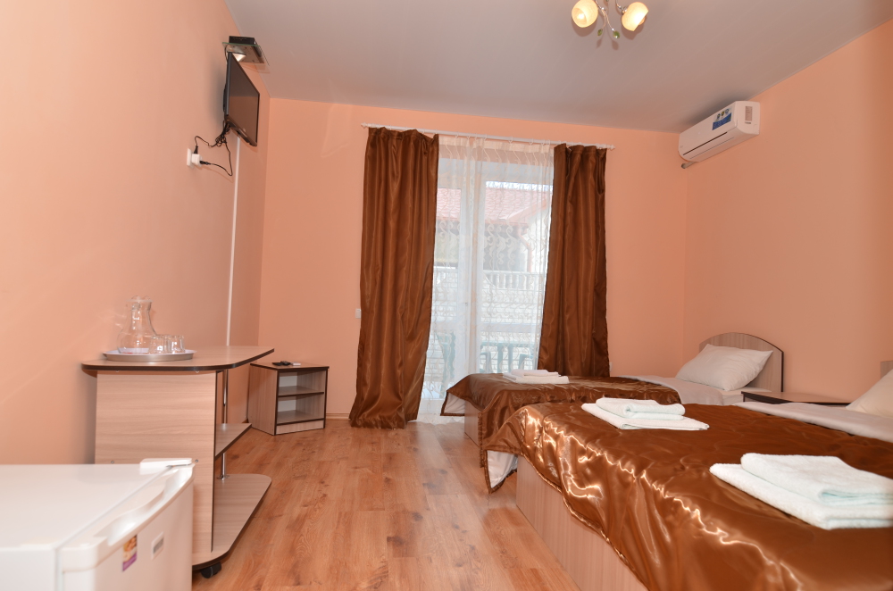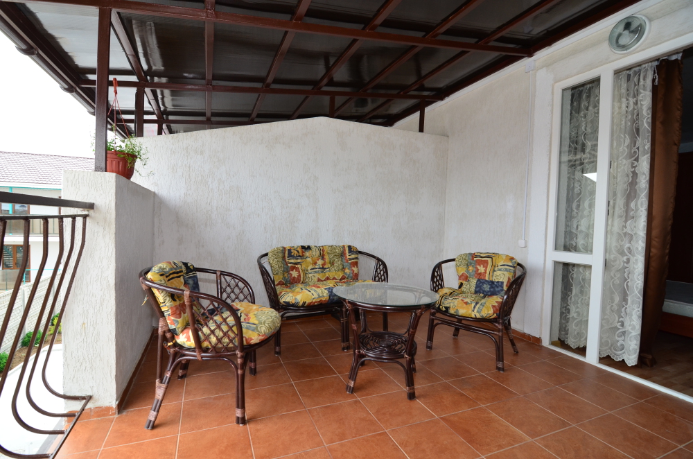 Гостевой дом предлагает большой выбор номеров, оборудованных необходимой современной мебелью, все комнаты имеют балконы или террасы (столик и 4 стула), боковой вид на море, совместный санузел, горячая и холодная вода подаются в гостевом доме круглосуточно. Есть возможность предоставления дополнительного спального места во всех номерах.