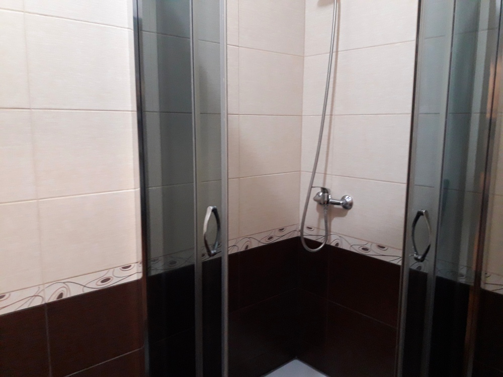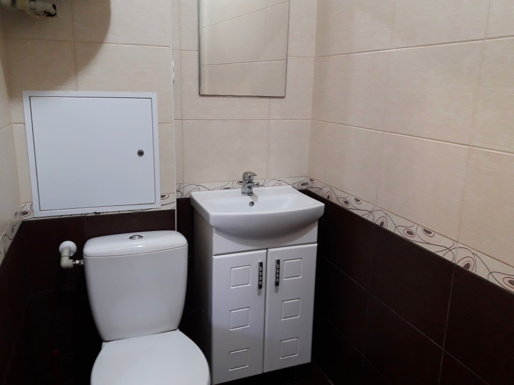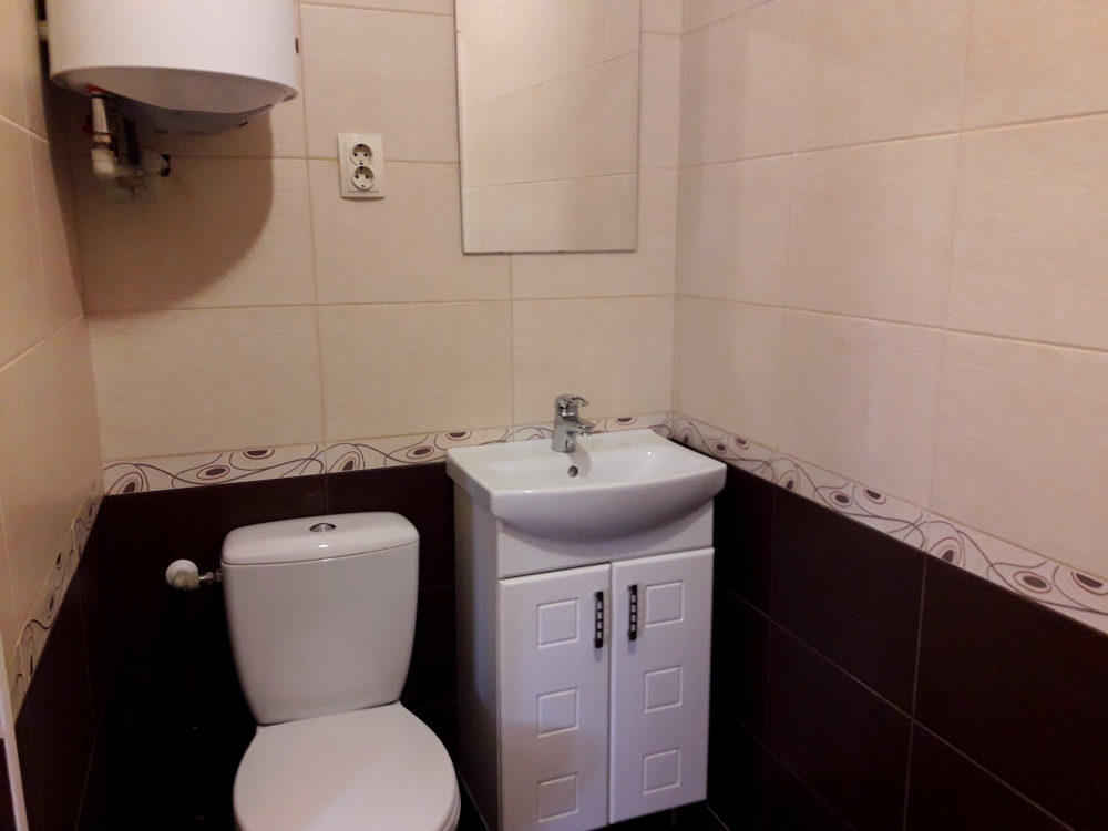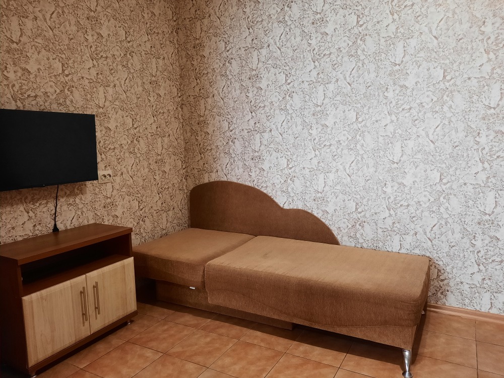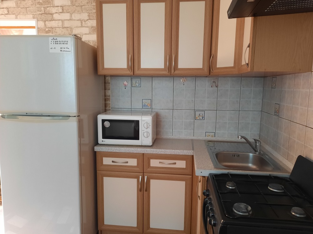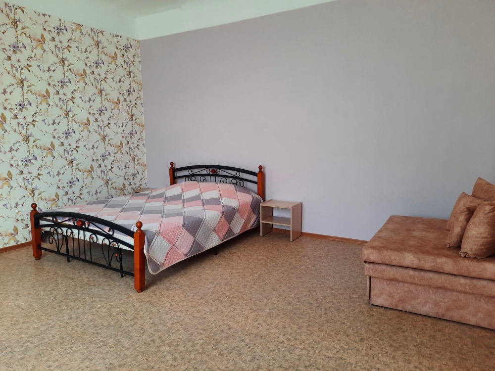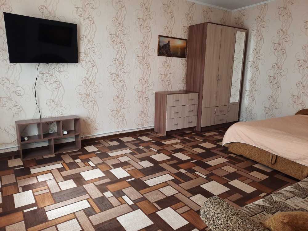 Есть все необходимое: двух спальная кровать, раскладной диван-тубус (три полноценных спальных места), шкаф, телевизор, кондиционер, кухонный уголок, посуда, холодильник, электрическая плита, электро чайник, микроволновая печь, стиральная машина, утюг, фен, wi-fi. Горячая и холодная вода круглосуточно. При входе столик и стулья.
