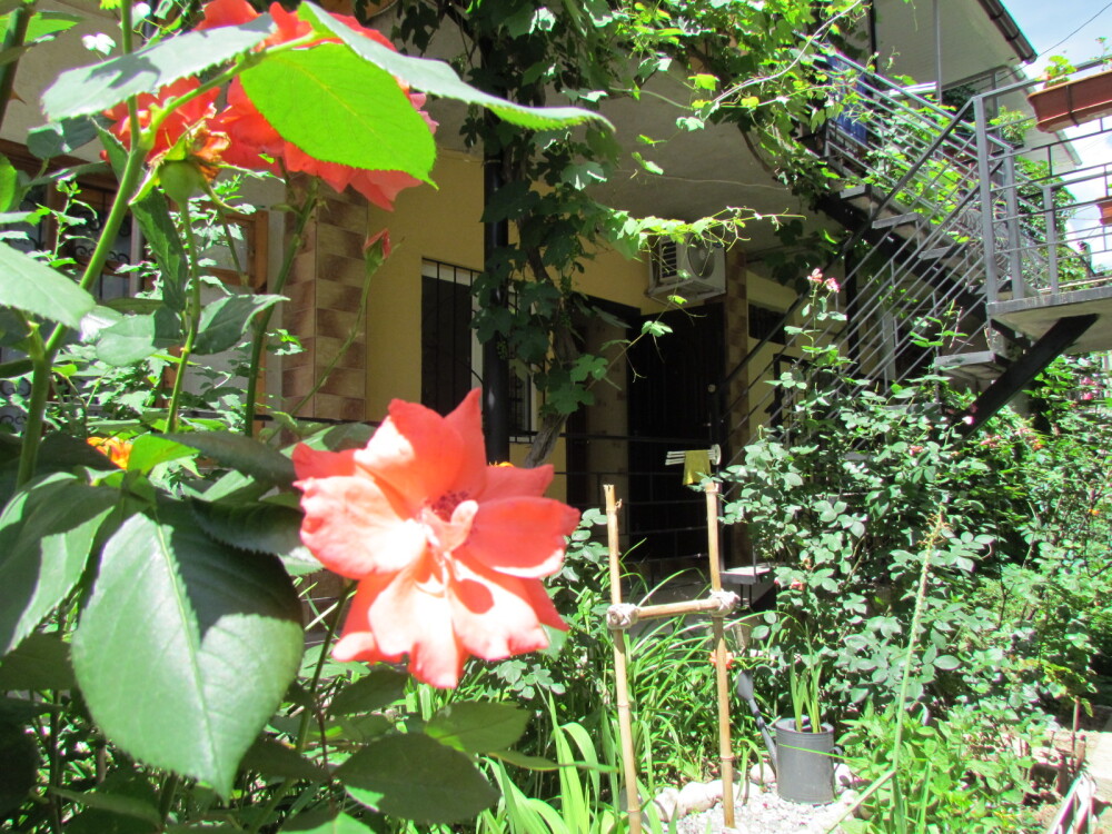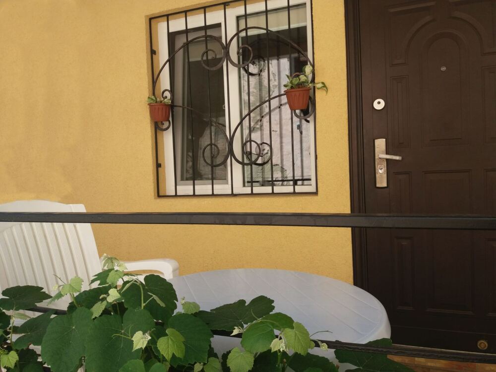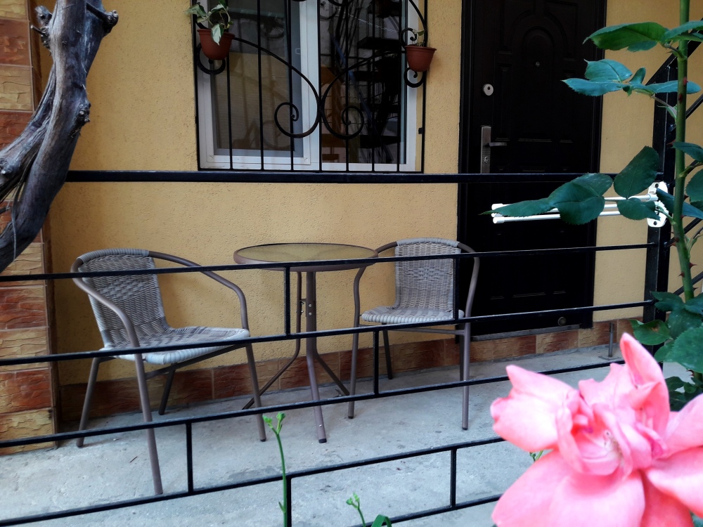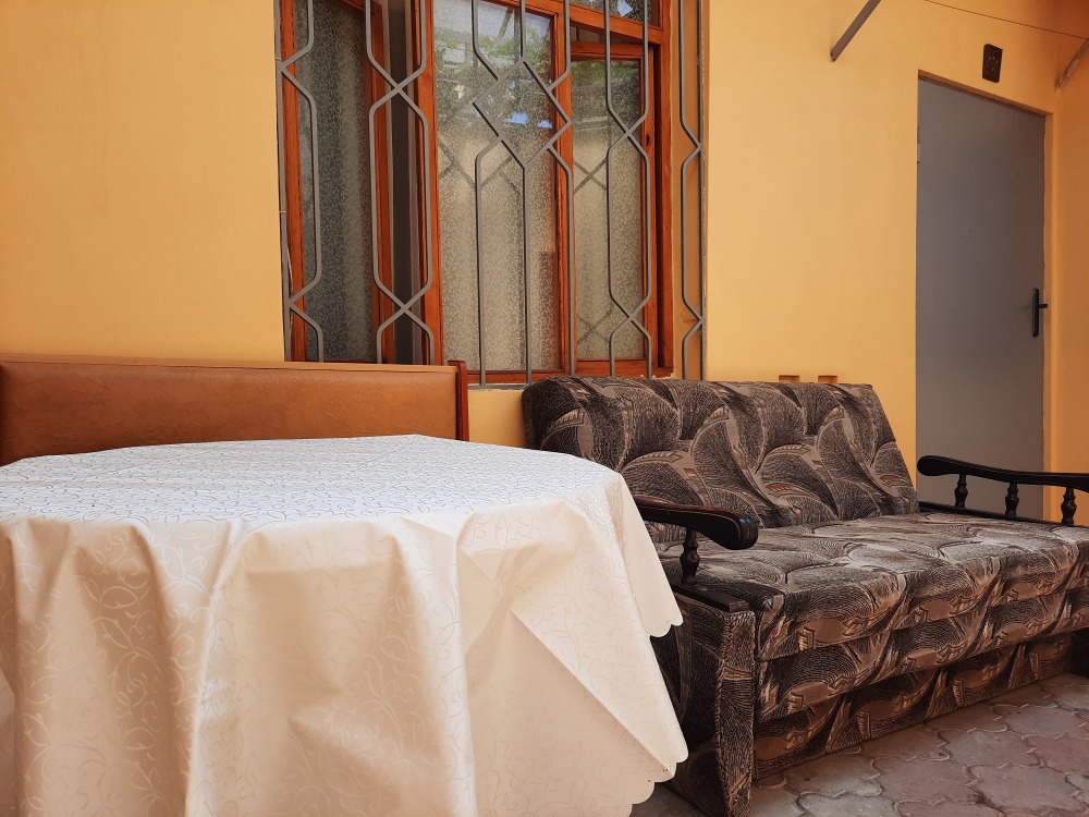 Есть все, что нужно для отдыха. Мебель: кухонный уголок, двуспальная кровать, раскладной диван-тубус, шкаф. Вся необходимая бытовая техника: кондиционер, телевизор, утюг, электрическая плита, электрочайник, холодильник, микроволновая печь, стиральная машина, wi-fi. Горячая и холодная вода круглосуточно. Уборка, смена постельного белья и полотенец бесплатно, один раз в неделю. При входе столик и стулья, во дворе мангал.