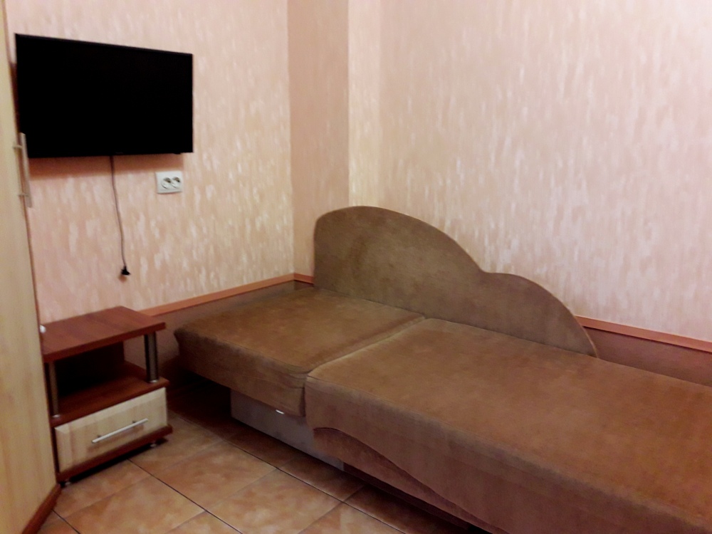 Есть все для комфортного отдыха. Большая двухспальная кровать и раскладной диван-тубус (три полноценных спальных места), шкаф, кухонный уголок (вся необходимая посуда), телевизор, кондиционер, утюг, фен, электрическая плита, микроволновая печь, холодильник, электро чайник, стиральная машина, wi-fi. Горячая и холодная вода круглосуточно. При входе столик и стулья. Уборка, смена постельного белья и полотенец бесплатно, один раз в неделю.