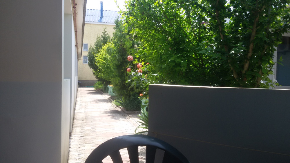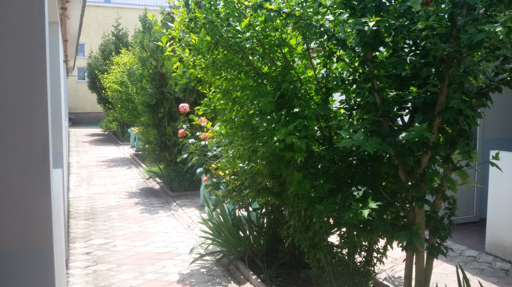 - На свежем воздухе. Красивый, зеленый дворик. Терраса, во дворе расположен мангал;