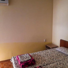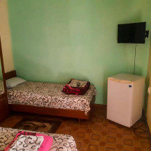 Просторные трехместные апартаменты. В каждом апартаменте: небольшая уютная веранда с мебелью, телевизор, холодильник, кондиционер, мебель, санузел (душ, унитаз, умывальник), бойлер, газовая плитка.
