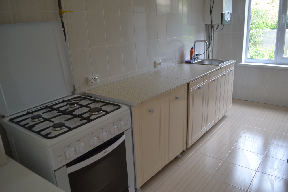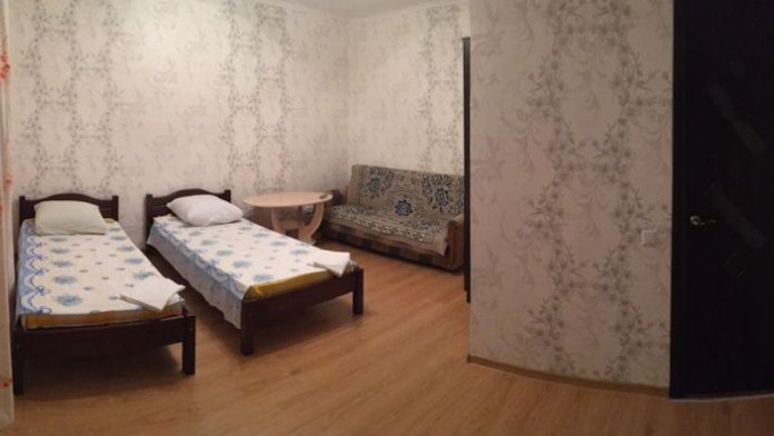 В номере санузел,телевизор,кондиционер,wi-fi,кухня отдельно общая, имеется все необходимое(газовая плита,микроволновка,посуда),стиральная машина.