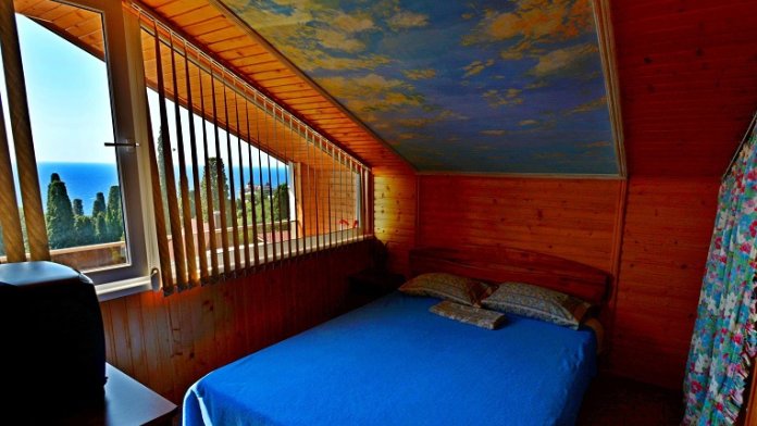 Это 3 этаж дома, там две комнаты, одна из них «проходная», этаж рассчитан на 5 чел. На этаже есть всё необходимое для комфортного отдыха: кухня, душ, туалет, Wi-Fi, TV, кондиционер… Есть большой балкон, с которого открывается панорамный вид на море.